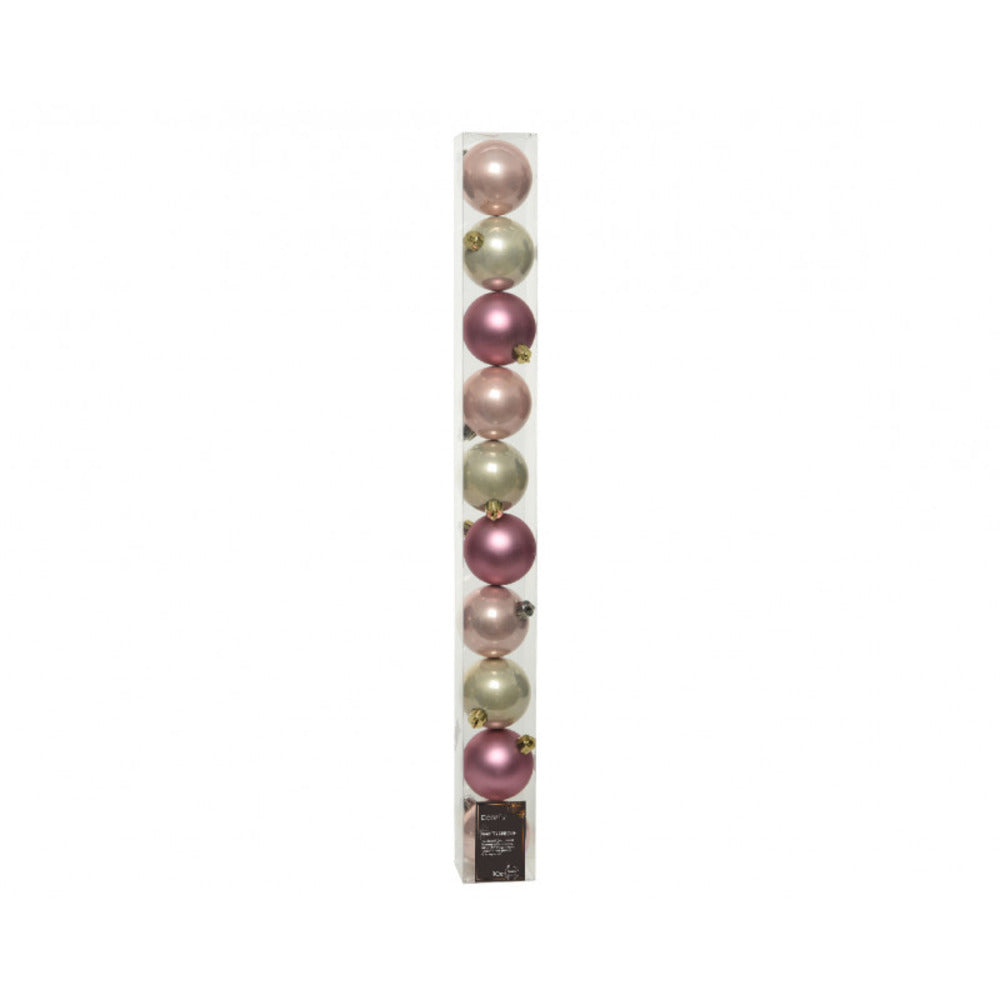 Christmas Decoration - Pack of 10 Shatterproof Baubles from Kaemingk. Great for decorating Christmas trees. Colour: 3 velvet pink, 3 pearl and 4 blush pink. Specifications: Shatterproof. Cap colour: Silver. Way of hanging: Silver wire. Diameter: 6cm.