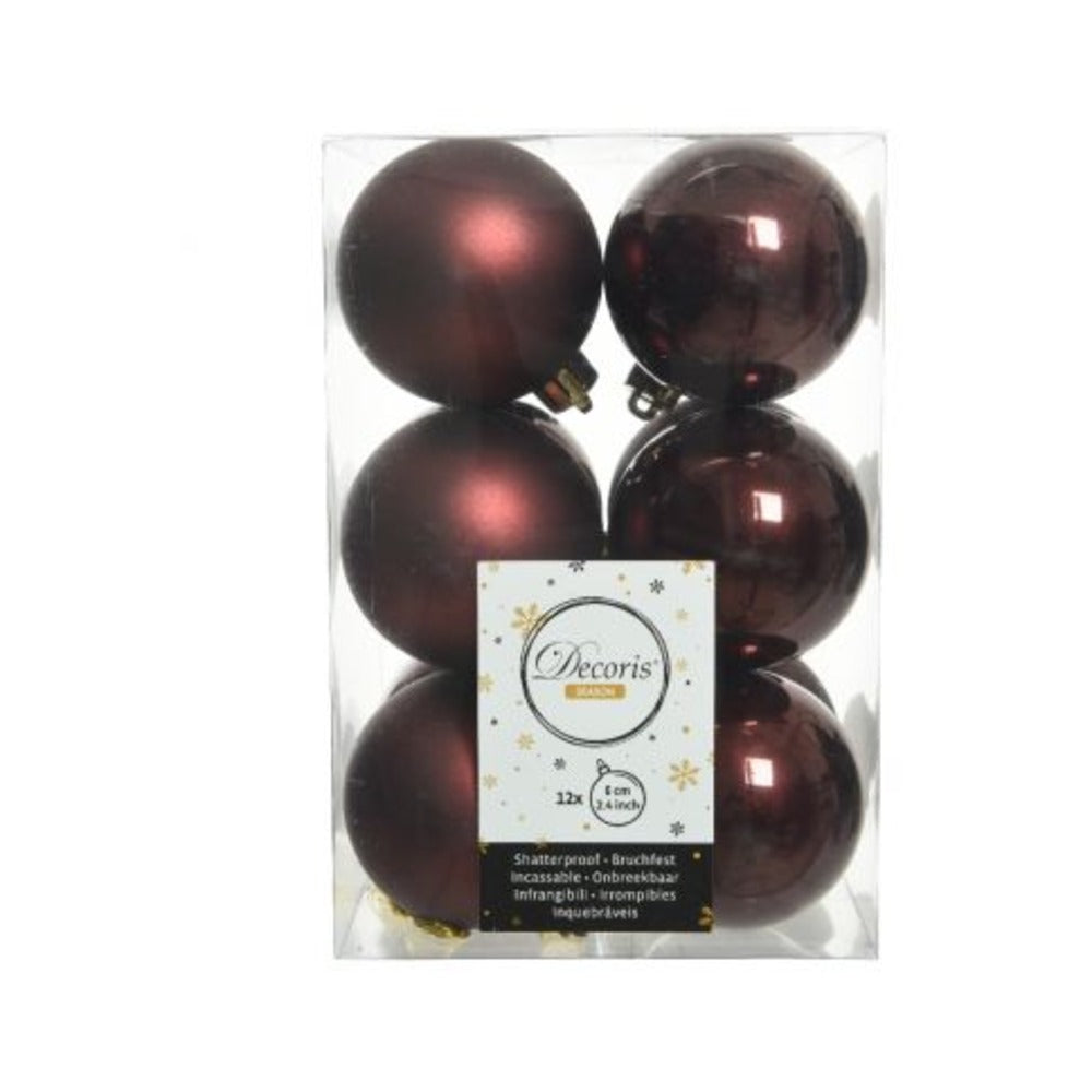 Christmas Decoration - Pack of 12 Shatterproof Baubles from Kaemingk. Great for decorating Christmas trees. Colour: 6 matte dark brown and 6 shiny dark brown. Specifications: Shatterproof. Cap colour: Gold. Way of hanging: Gold wire. Diameter: 6cm.