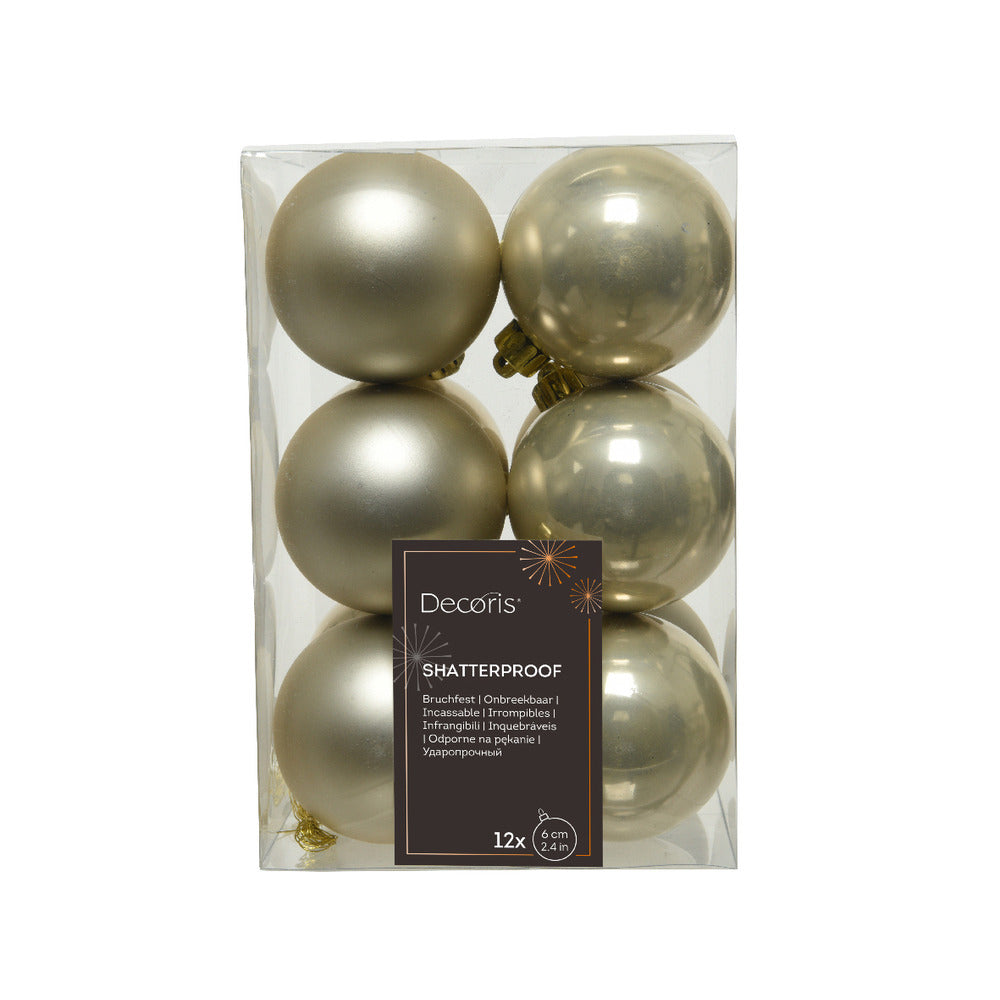 Decoris Shatterproof Christmas Bauble Pearl These Decoris Christmas baubles in pearl are a perfect addition to your tree this festive season. Crafted from recycled polystyrene, these baubles offer durability without compromising on style, making them a must-have for family households. - Shatterproof design, ensuring safety for all ages - Elegant pearl shade adds a touch of sophistication - Diameter: 6 cm, ideal for medium to large trees - Includes gold cap and wire for secure hanging These baubles are easy to hang with their gold wire, allowing you to effortlessly decorate your tree in no time. Their neutral pearl colour complements any festive decor theme, bringing a classic and luxurious ambiance to your home. Perfect for those who want to enjoy the beauty of glass baubles without the risk of breakage, these shatterproof ornaments are a practical yet stylish choice for your seasonal decorations. Get ready to impress your guests with this timeless addition to your Christmas decor!