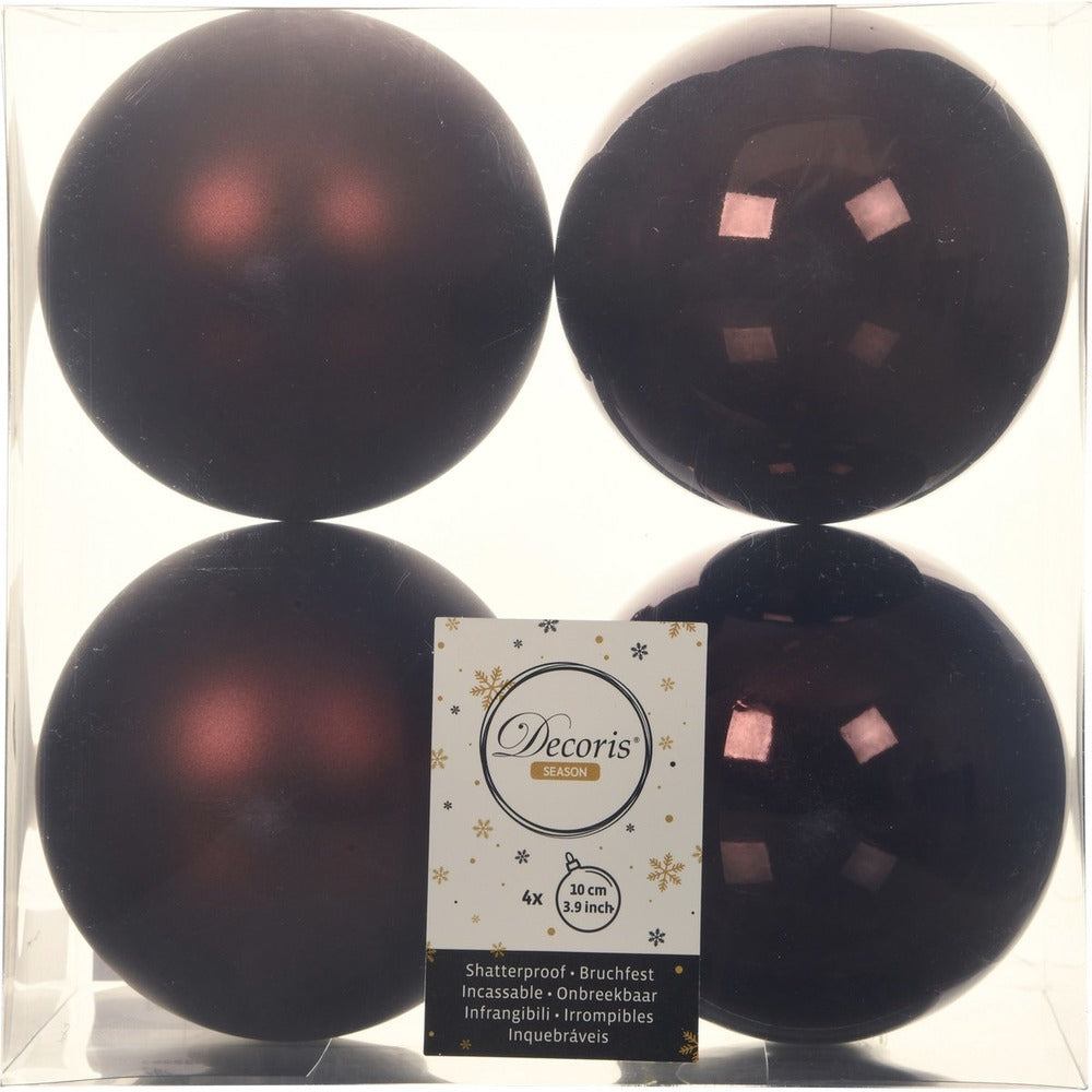 Christmas Decoration - Pack of 4 Shatterproof Baubles from Kaemingk. Great for decorating Christmas trees. Colour: 2 shiny dark brown, 2 matte dark brown. Specifications: Shatterproof. Cap colour: Gold. Way of hanging: Gold wire. Diameter: 10cm.