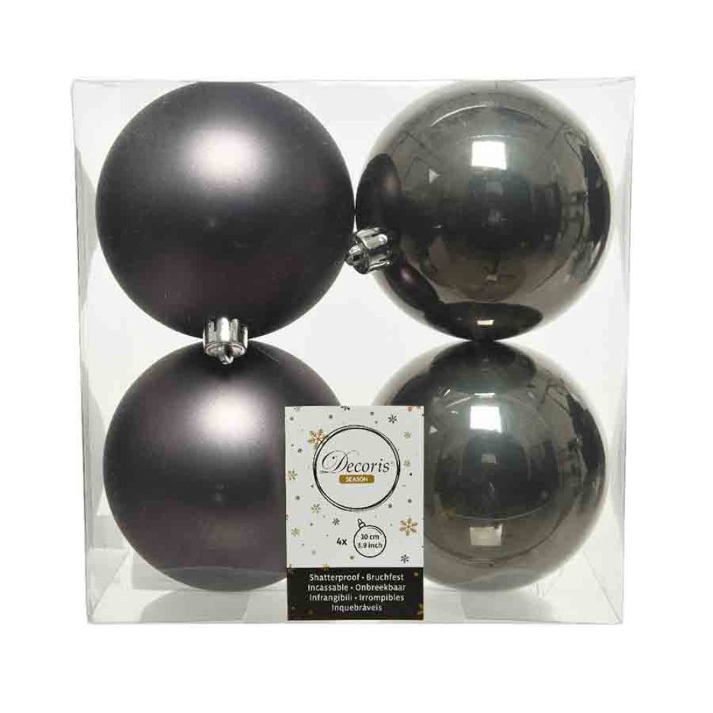 Christmas Decoration - Pack of 4 Shatterproof Baubles from Kaemingk. Great for decorating Christmas trees. Colour: 2 shiny warm grey, 2 matte warm grey. Specifications: Shatterproof. Cap Colour: Silver. Way of hanging: Silver wire. Diameter: 10cm.