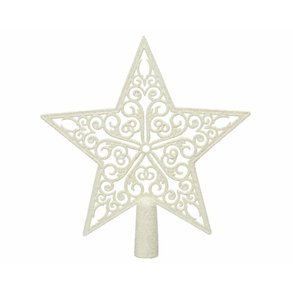 Add a dazzling touch to your Christmas tree with the Decoris Shatterproof Hollow Star Tree Topper. Standing at 21cm tall, this tree topper features a striking hollow star design with a glittery finish in a festive white color. Made from shatterproof material, this tree topper is durable and safe for use on your tree. Bring a touch of magic to your holiday decor with this beautiful and stylish tree topper.