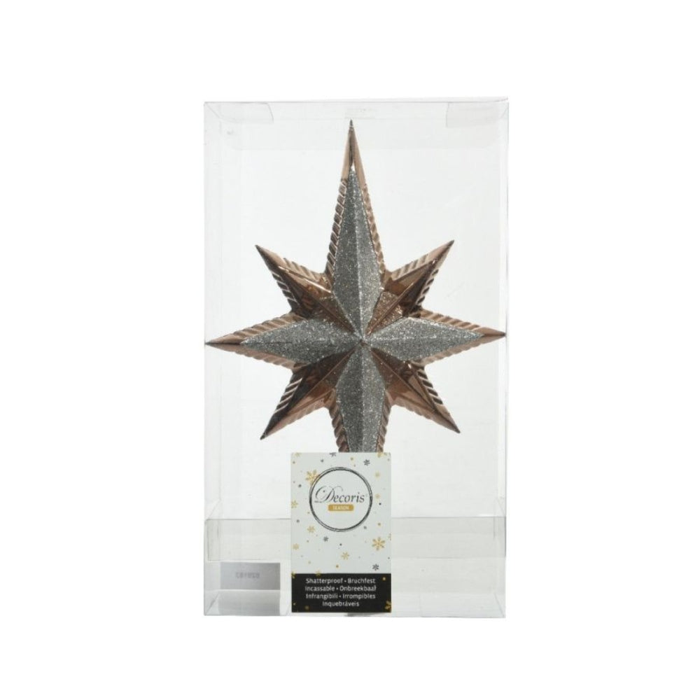 Add the perfect finishing touch to your Christmas tree with the Decoris Shatterproof Peak Star Tree Topper. This elegant walnut star measures 25.5cm in height and is shatterproof, making it safe to use in homes with children or pets. The beautiful design of the star will add a touch of glamour to your festive decor. Make your tree shine bright this holiday season with this stunning tree topper.