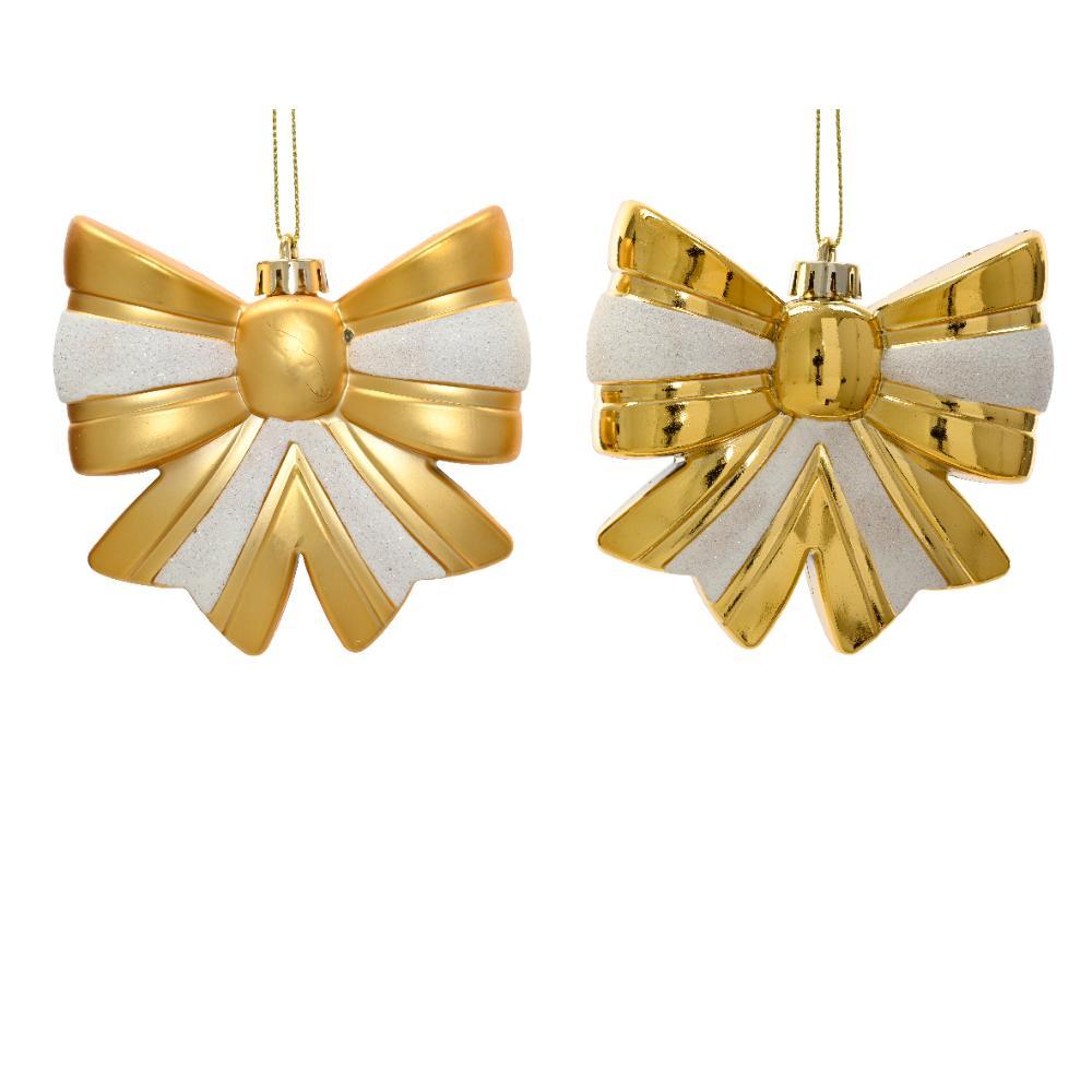 Decoris Bow Light Gold Elevate your Christmas tree decorations with the charming Decoris Bow in light gold. Designed to add a glamorous touch, this bow is perfect for both traditional and modern holiday themes. - Shatterproof construction made from durable polystyrene - Features a dazzling winter white glitter detail - Shiny-matt-glitter finish for an elegant look - Diameter: 12 cm, Height: 12 cm - Comes with a gold wire for easy hanging This delightful shatterproof bow not only maintains its beauty but is also a practical choice for households with children or pets. The radiant gold colour, highlighted with a glossy and matte glitter finish, creates a warm and inviting atmosphere, perfect for celebrating the festive season. With a secure gold wire for hanging, you can easily install this lovely decoration wherever you please, bringing the joyous Christmas spirit into your home with ease. It's time for your tree to shine like never before with this beautiful Decoris Bow!