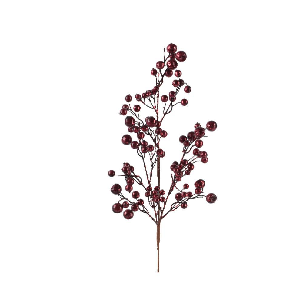 Decoris Spray Maroon Elevate your holiday décor with the Decoris Spray in stunning maroon. This decorative piece is perfect for adding a pop of festive colour to your garlands, wreaths, or table centerpieces. Featuring a rich maroon shade, it brings warmth and elegance to any setting. - colour: Maroon (part of the red colour group) - Length: 5 cm - Width: 16 cm - Height: 68 cm - Material: Foam - Decoration: decorated with realistic berries - Finishing: Enhanced with a subtle glitter effect The spray’s design is crafted from high-quality foam, ensuring durability and a lifelike appearance. The glitter finishing adds a touch of sparkle, capturing the magical essence of the holiday season. With its perfect dimensions, this spray can be easily incorporated into various floral arrangements, enhancing your home’s festive atmosphere. Whether you're decorating for a cozy family gathering or a grand Christmas celebration, the Decoris Spray Maroon is an effortless way to infuse your space with holiday cheer.