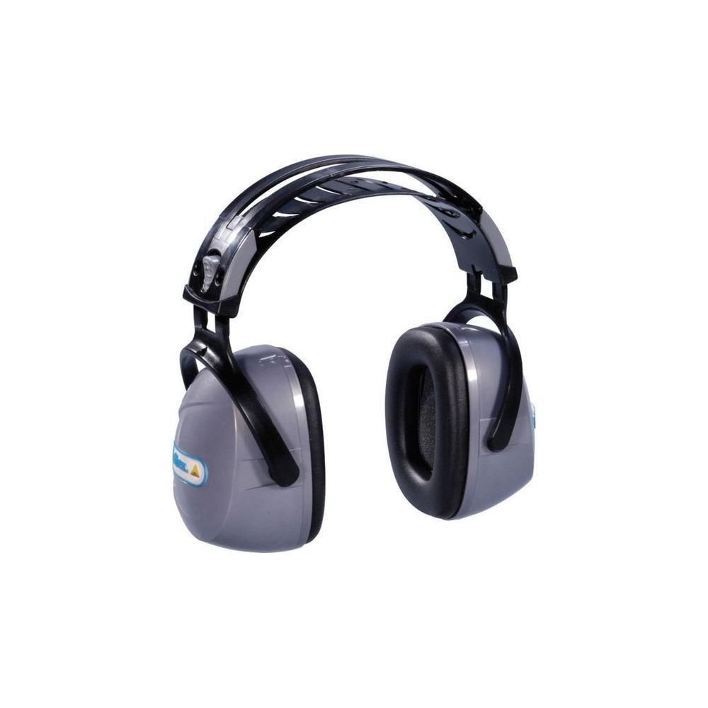 Ear defenders with ABS cups. Pads filled with synthetic foam. Double plastic headband (POm) adjustable in height with soft reinforcement for a better comfort. composition: cup: ABS. Pad: foam. Headband: POm.
