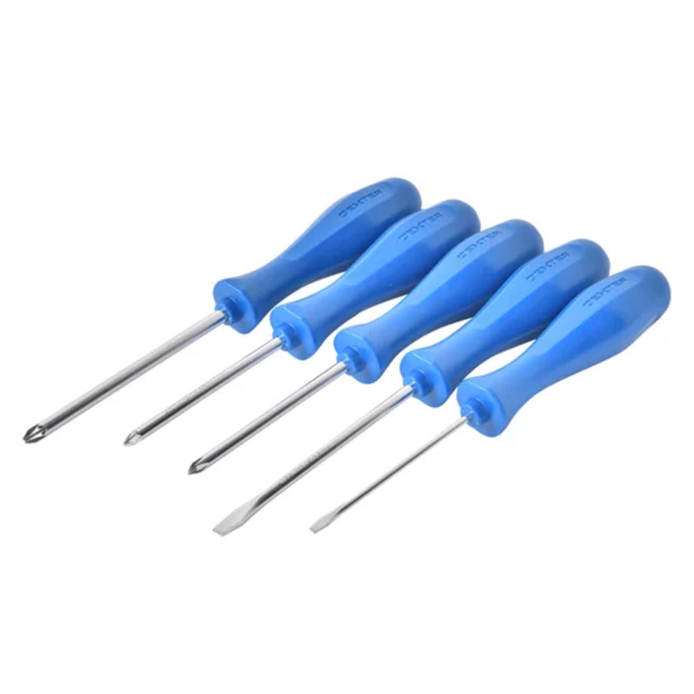 5Pc Screwdriver ,Pz1X 80/Pz2X 100/Sl3X80/Sl5.5X100/Ph 1X80, One Pp Injection, Cr-V Blade, Chrome Finish, No Magnet, No Black Tip