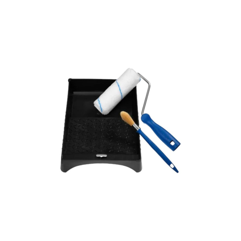 Use the universal kit to paint your smooth walls and ceilings, consisting of an 18 cm universal paint roller + a paint tray and a 15 mm brush. Other characteristics : Fabric composition: 100% microfiber Handle length (in cm): 28 Fiber material: Microfiber Handle type: Short Main equipment: Polypropylene Handle diameter (in mm): 48 Handle width (in mm): 180 Type of finish that can be painted, varnished or must be painted: average