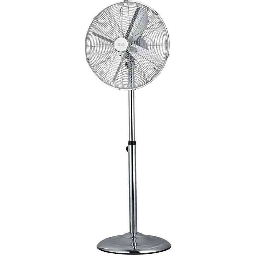 With a power of 55 Watts and 40 cm in diameter. It is adjustable with its 3 speeds according to your needs. It has a modern chrome look and the fan is adjustable in height. This fan has an automatic or disengageable oscillation and is also tiltable with its tilting head which allows a very wide diffusion of air. This Domair fan remains very quiet with an acoustic power of 66.8 Decibels. It has a timer going up to 7:30. It contains all the safety elements to be able to use it with complete peace of mind.