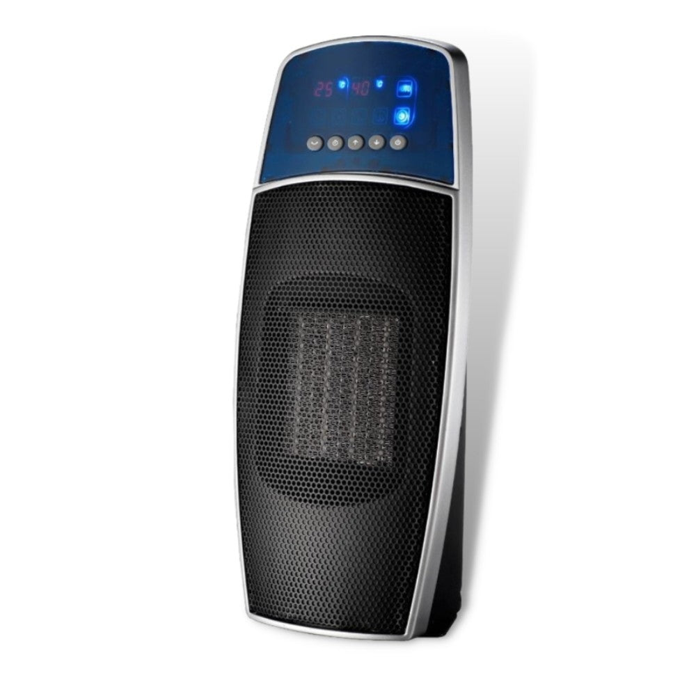 -2kg -Power: 1500w 2 heat settings: 750/1500w Electronic thermostat LED display Remote control 24 hour programmable timer Fonction retardateur 30 secondes Integrated carrying handle Tip-over switch Overheat protection: automatic thermal cut-off. -Product size (W x H x P): 17 x 40 x 15cm -Net weight: 2kg -Colour: black/blue. -DC motor: low noise, increased durability -First-class operating comfort: with remote control and 24 hour -programmable timer (delayed start and automatic switch-off) -Rapid rise in temperature provided by the ceramic element