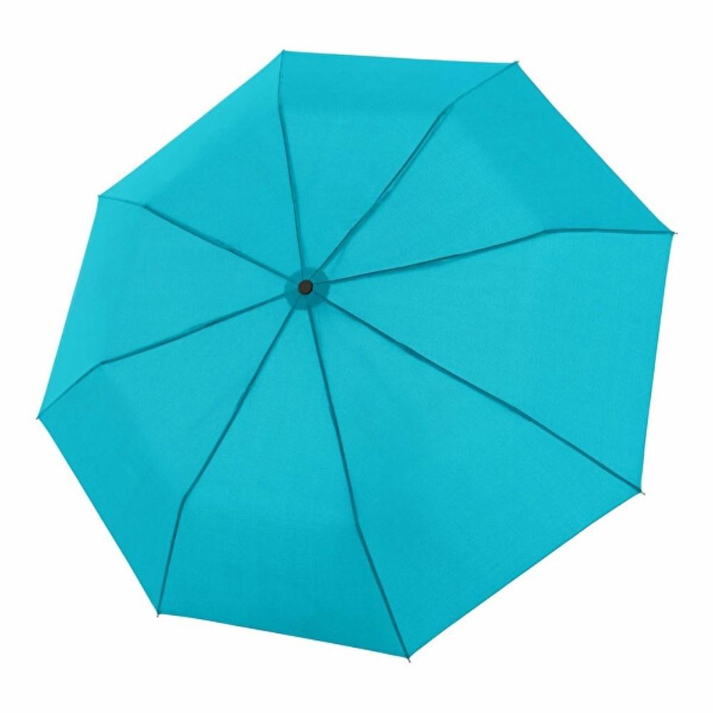 Colour: Aqua Blue Opening method: manually Material: polyester and durable steel frame Number of spokes: 54/8 Weight: 237g Diameter: 96cm The Derby collection stands out for its balanced ratio between price and quality. The ideal combination of high-quality materials and fashionable design. The collection offers umbrellas from manual to automatic. Long life and practicality are a matter of course here.