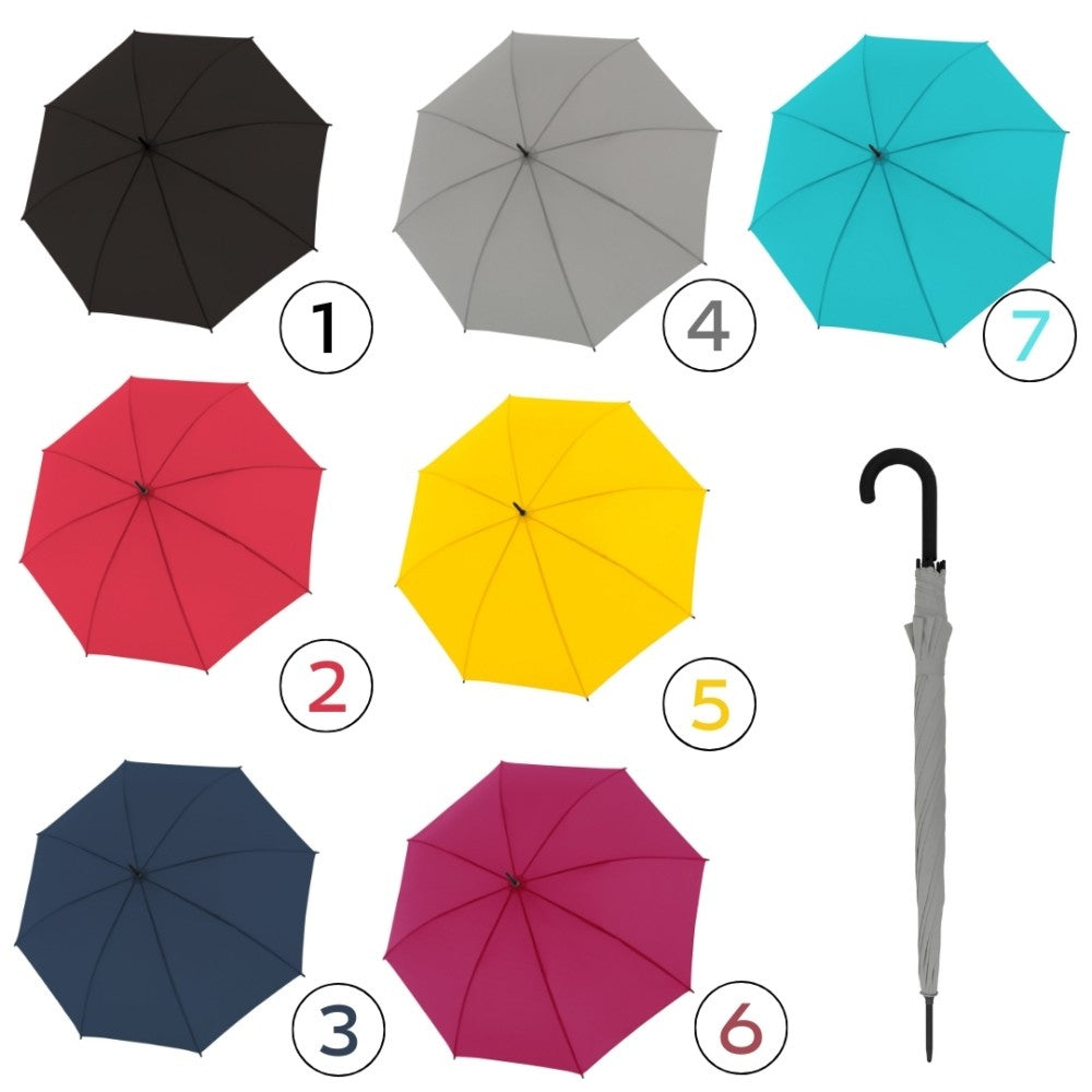 Choose your colour below - available in: Black Red Navy Grey Yellow Berry Aqua Blue Details: Folded length: 85cm Weight: 332g Mechanism: automatic opening Number of spokes: 8 Material: Polyester, steel and fiberglass