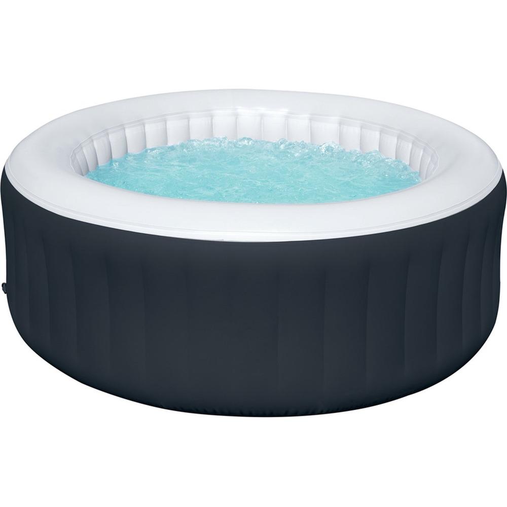 Set up in 5 minutes Heats up to 40°C Accessories included Note: This product is exclusively available online Bring that spa feeling into your own garden with this inflatable jacuzzi. You can set it up in a jiffy, and use the included pump to inflate it. Enjoy! Fill the jacuzzi with water and set the temperature up to 40°C using the switch. Read the temperature using the LCD screen, and enjoy a private spa at home with two to three people once you’ve reached the desired temperature. And if you want to save energy, turn on the timer to make sure the heating system will turn off automatically. After a long day’s work, taking a moment to relax is a real treat. Your body will feel rejuvenated after a busy working week thanks to the 110 jets. And everyone deserves that, right? Hygiene has also been considered, of course. The jacuzzi has a chlorine dispenser that ensures a stable chlorine level at all times. Once you’ve finished, you can protect the jacuzzi using the strong tarpaulin provided. This also prevents dirt from getting in when you’re not using it, and you can leave it outside without a care in the world – even in unpredictable weather. If it freezes in the evening, for instance, the jacuzzi will automatically switch the heating on to prevent the water from freezing and damaging the jacuzzi. Everything’s been considered, and it also looks the part in black!