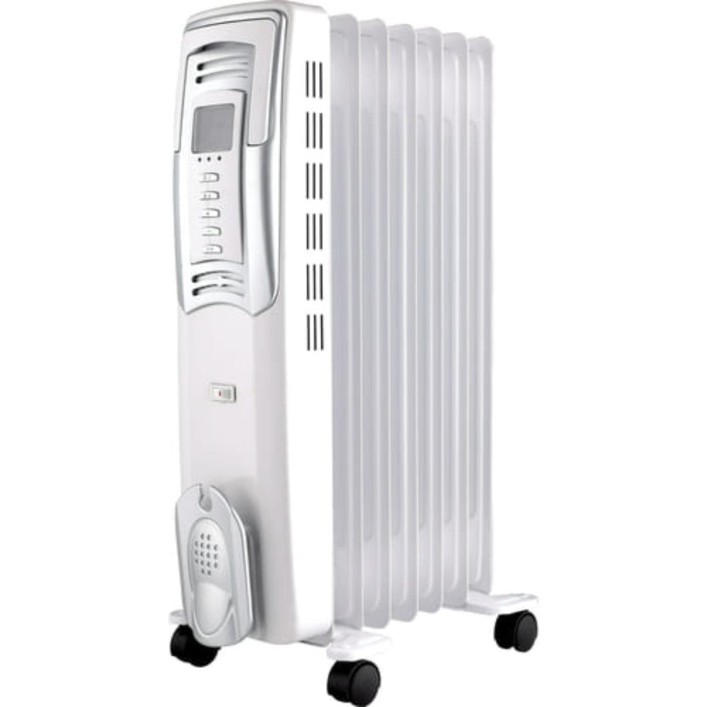 -8,8kg -Power: 1500w - 7 fins Electronic thermostat 3 heat settings: 500/1000/1500w Power indicator light LED display with large screen Eco and frost protection modes Adjustable temperature range (Maximum 30 C) 24 hour programmable timer (delayed start/automatic switch-off) 4 multidirectional wheels Overheat protection: automatic thermal cut-off Tip-over switch Integrated carrying handle Cable storage system. -Product size (W x H x D): 34.5 x 66 x 14.5cm -Net weight: 8.8kg -Colour: light grey -Class -Optimal comfort: smooth and homogeneous heat 3 heat settings (500/1000/1500): accurate control of the temperature -Extremely quiet operation