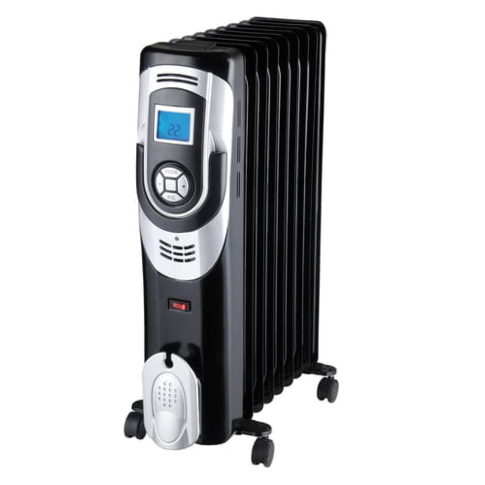 -10,3kg -Power: 2000w - 9 fins Electronic thermostat 2 heat settings: 1000/2000w Power indicator light LED display with large screen Adjustable temperature range (Maximum 30 C) 24 hour programmable timer (delayed start/automatic switch-off) 4 multidirectional wheels Overheat protection: automatic thermal cut-off Tip-over switch Integrated carrying handle Cable storage system. -Product size (W x H x D): 42.5 x 62.5 x 24cm -Net weight: 10.3kg -Colour: black/chrome -Class I -Optimal comfort: smooth and homogeneous heat -2 heat settings (1000/2000): accurate control of the temperature -Extremely quiet operation -24 hour programmable Smer for delayed start and automa\c switch-off -Easy to move thanks to the multidirectional wheels