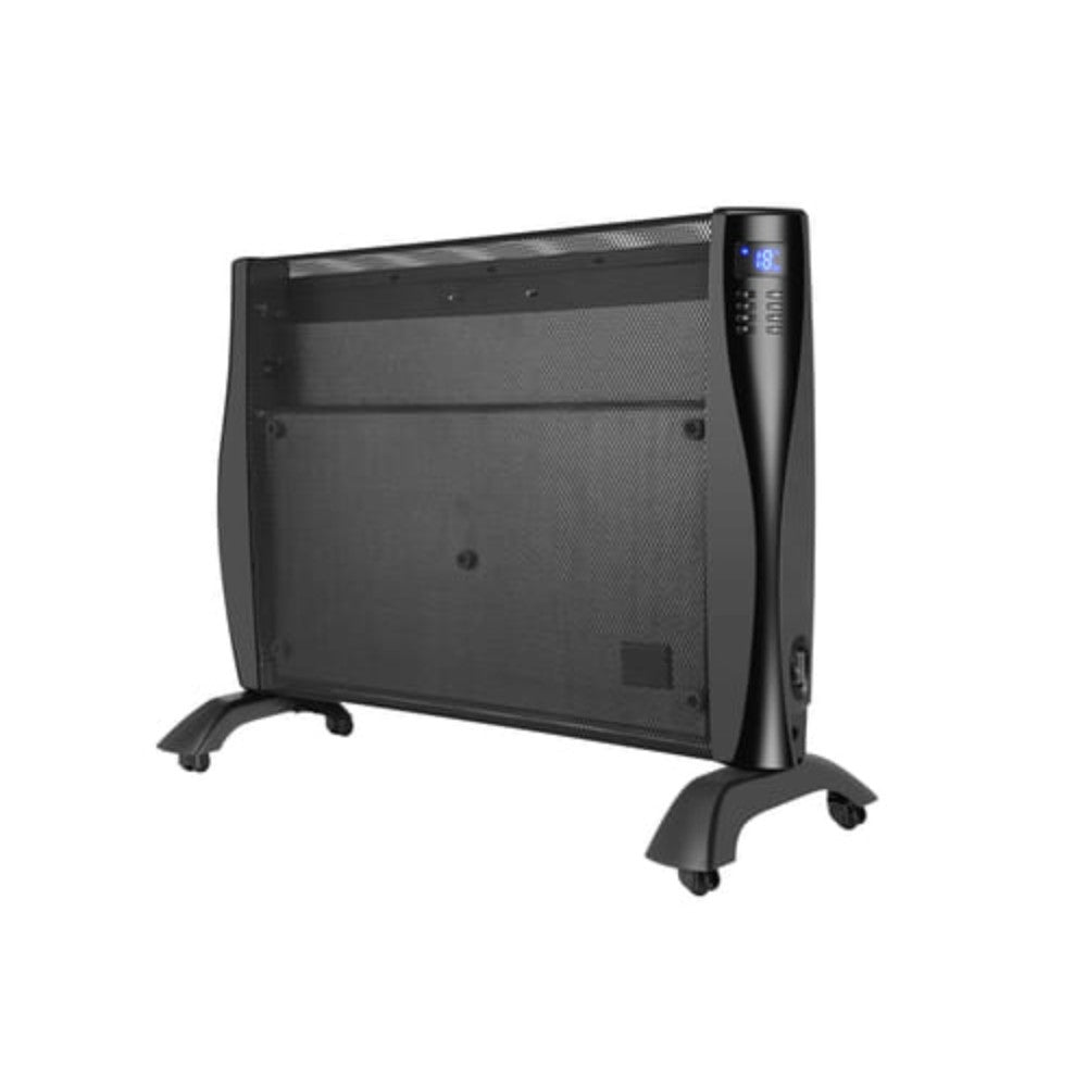 -5kg -Power: 1500w Electronic thermostat LED display 2 heat settings: 1000/1500w Digital control panel with fingertip controls 5 pre-set programs + 1 customizable program 2 heating modes: comfort and frost protection Open window detection function Overheat protection: automatic thermal cut-off Tip-over switch. -Product size (W x H x D): 79 x 57 x 9cm -Net weight: 5kg -Mounting kit provided -Colour: black -Class I - IP24 -Free-standing or wall-mounted (mounting set provided) -Can be used in the bathroom (IP24) -5 pre-set programs + 1 customizable program