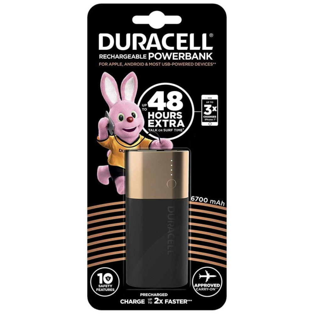 Duracell Powerbank 6700mAh is a fast and portable solution to always supply your mobile devices with energy. This compact Powerbank offers you up to 48 hours of extra talk time or surfing time. The power bank is compatible with Apple, Android and most USB devices. Thanks to the dual charging technology, you can charge both the power bank and your device at the same time and it has an LED indication to let you know how much energy is left.