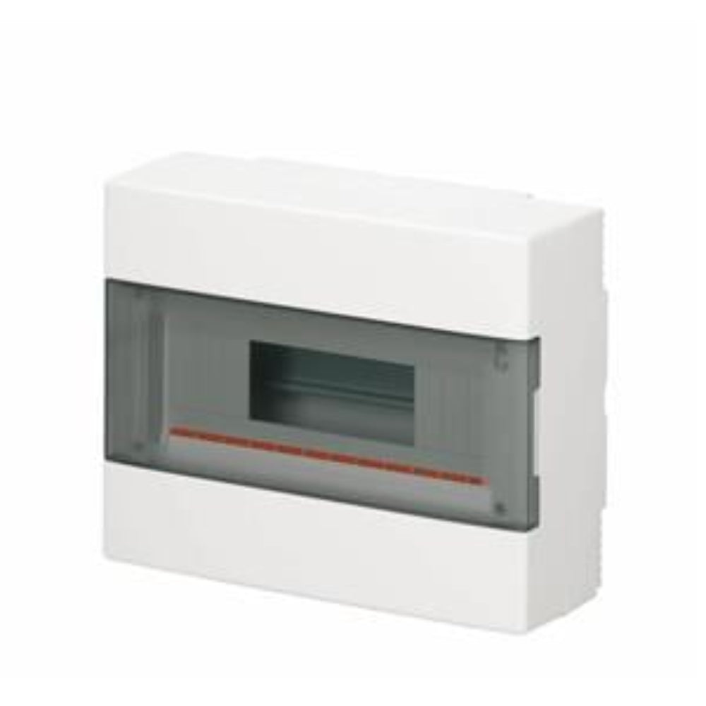 Reversible smoked polycarbonate door. Prepared for terminal block housing and for lid sealing. DIN EN 50022 galvanised steel bar fitted. Cover cap for unsused modules supplied. Self-adhesive circuit identification label. Screw caps for double insulation.