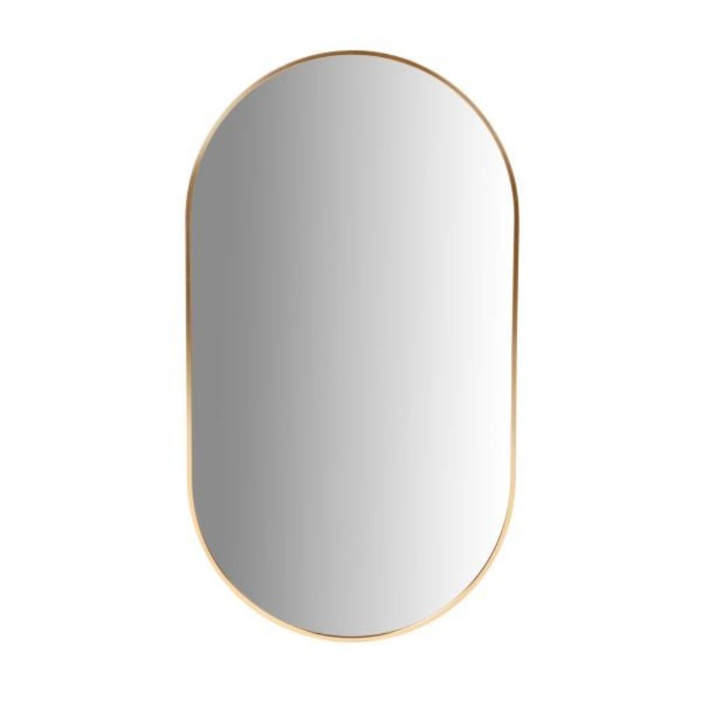 Beautiful oval shape Metal frame To be hung on the wall Stylish, minimalist design Hanging oval mirror in gold frame The HOMLA ELORA hanging mirror impresses with its elegant, minimalist design. It has an oval shape so that it captures more of your silhouette, allowing you to choose the best styling for when you leave the house. The glass panel is set in a gold frame, making the mirror look great from both the front and the side. Special handles have been placed on the back so that the mirror is immediately ready to be hung on the wall. Purpose ELORA wall mirror will allow you to choose your best outfit and make the last adjustments before leaving the house. It will work great hung in a bedroom, dressing room, hallway or corridor. The gold, smooth frame makes it fit in well with most arrangements - minimalist, eclectic or glamorous. It will not only be a practical piece of furniture, but also a stylish addition to the décor. Material The mirror is made of glass, which is set in a metal frame. The simple shape makes it easy to keep clean. It should be protected against falling.