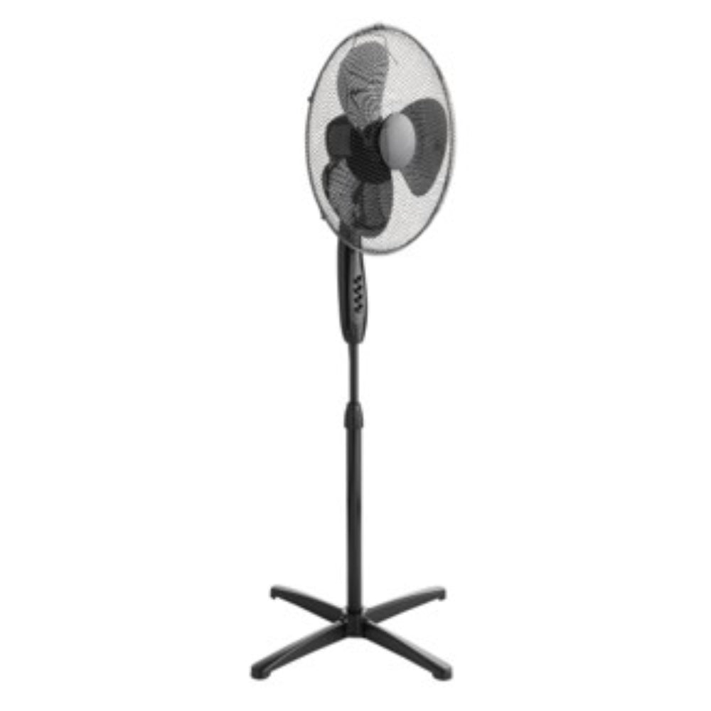 Product characteristics: Power (in W) 45. Sound level (in dB): 51.86. Maximum flow (in m³/h) 2490. Number of speeds: 3. Number of blades: 3. Color family: Black. Main material: Steel. Diameter (in cm) 40. Height (in cm): 118. Width (in cm) 66.1. Depth (in cm) 66.1. Reclining: Yes Cable length (in m) 1.5.