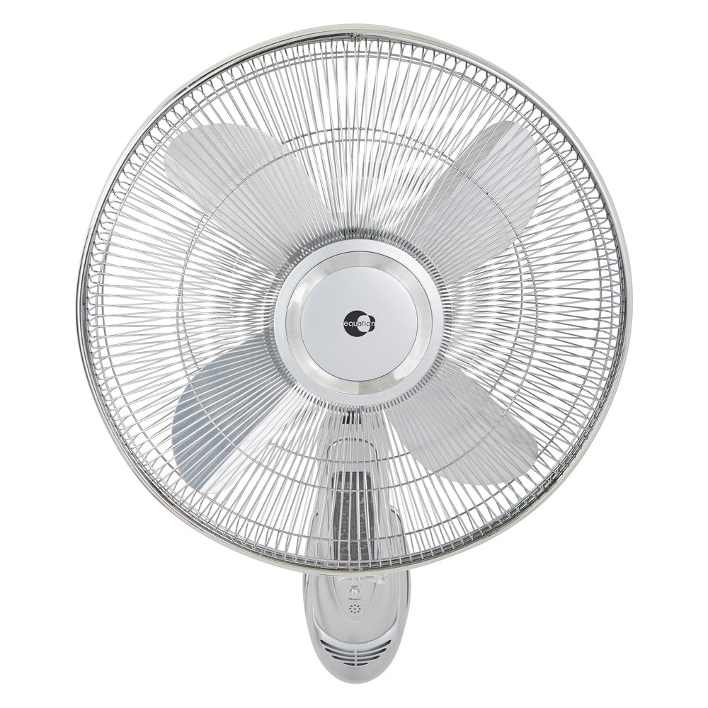Wall fan in metallic gray color with 55 W of power and 3 operating speeds with an oscillating head measuring 40 cm in diameter and with a timer of up to 12 hours with a maximum noise level of 64 dB. I included an LCD screen to control the device and a remote control. Measurements: 46 X 71 X 30 cm.