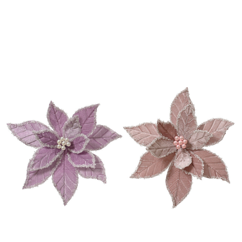 Add a touch of nature and some sparkle to your home with the Everlands Polyester Velvet Poinsettia Clip with Beads. Available in two different designs with a colour option of lilac or blush pink. Each choice is complete with a silver crocodile clip at the base for easy placement and positioning. Product details Dimensions: 14cm (H) x 32cm (Dia). Colour: lilac or blush pink. Silver crocodile clip on the base. Decoration: central beads & glitter edges. Design: poinsettia. Material: polyester velvet.