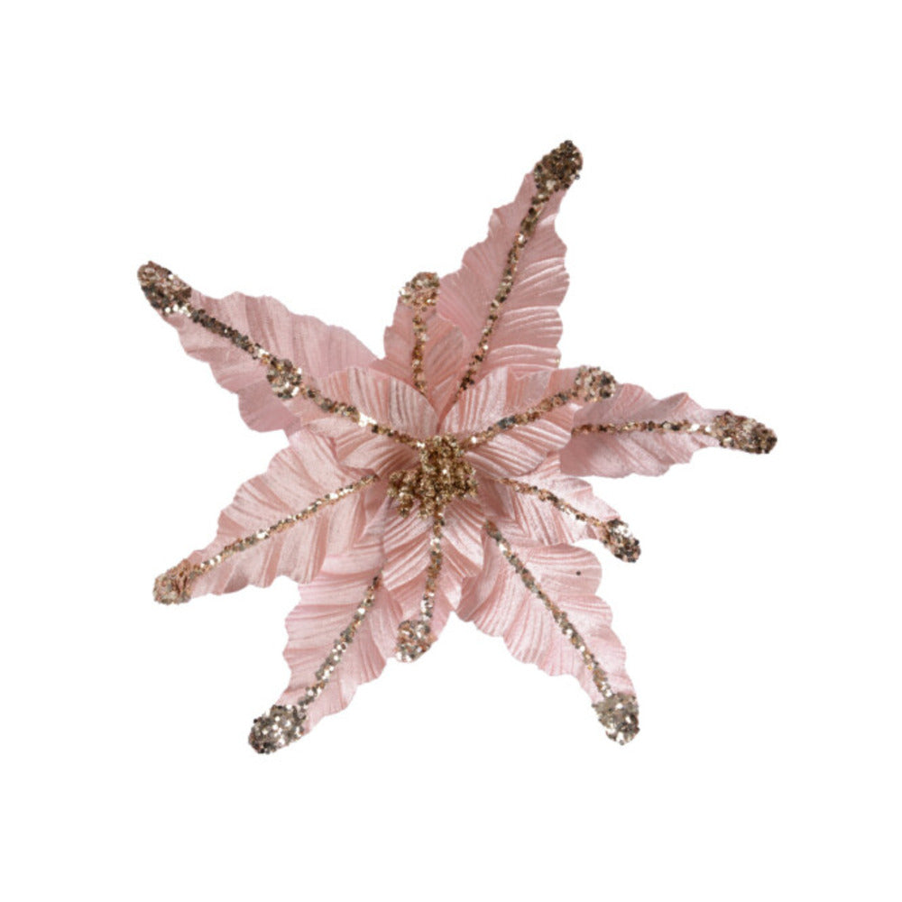 This beautifully bold Everlands Blush Pink Flower is perfect for adding to the branches of your real or artificial Christmas tree. There is wire on the base which means it’s easy to secure the flowers and they will stay in place without turning over or falling off. They can also make a stunning finishing touch to homemade wreaths and garlands or within large, festive displays. Created with a polyester velvet material in a classic Blush Pink colour. Glitter and spangles in a gold colour are used to add details to the centre and petals. Product details Dimensions: 17cm (H) x 44cm (Dia) Colour: Blush Pink. Wire on the base. Material: polyester velvet. Finish: glitter & spangles.