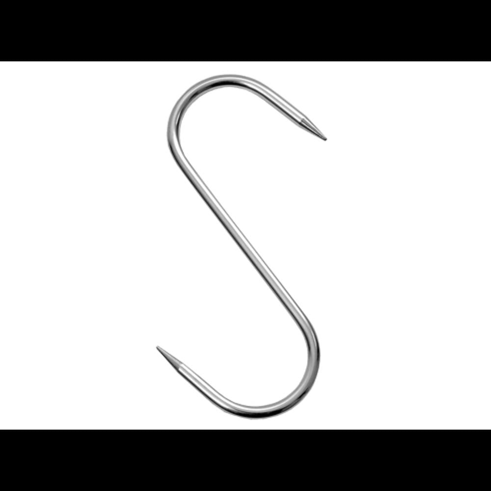 The Ganci Macell.Inox 2 Points Mm140X6 Cf10Pz is a set of stainless steel hooks designed for use in meat processing and butchery. With its 2-point design and durable construction, it provides a reliable and efficient solution for hanging and processing meat.The Ganci Macell.Inox 2 Points Mm140X6 Cf10Pz is a set of stainless steel hooks that are designed for use in meat processing and butchery. The hooks feature a 2-point design, which provides excellent stability and balance when hanging meat, ensuring that it is evenly distributed and can be processed efficiently. The hooks are made of high-quality stainless steel, which provides excellent durability and resistance to corrosion and wear and tear, ensuring a long lifespan and reliable performance. The hooks are also easy to clean and sanitize, making them a hygienic and safe choice for use in food processing. The Ganci Macell.Inox 2 Points Mm140X6 Cf10Pz hooks have a length of 140mm and a diameter of 6mm, making them suitable for use with a range of meat cuts and sizes. The hooks also feature a convenient eyelet for easy hanging and storage when not in use.
