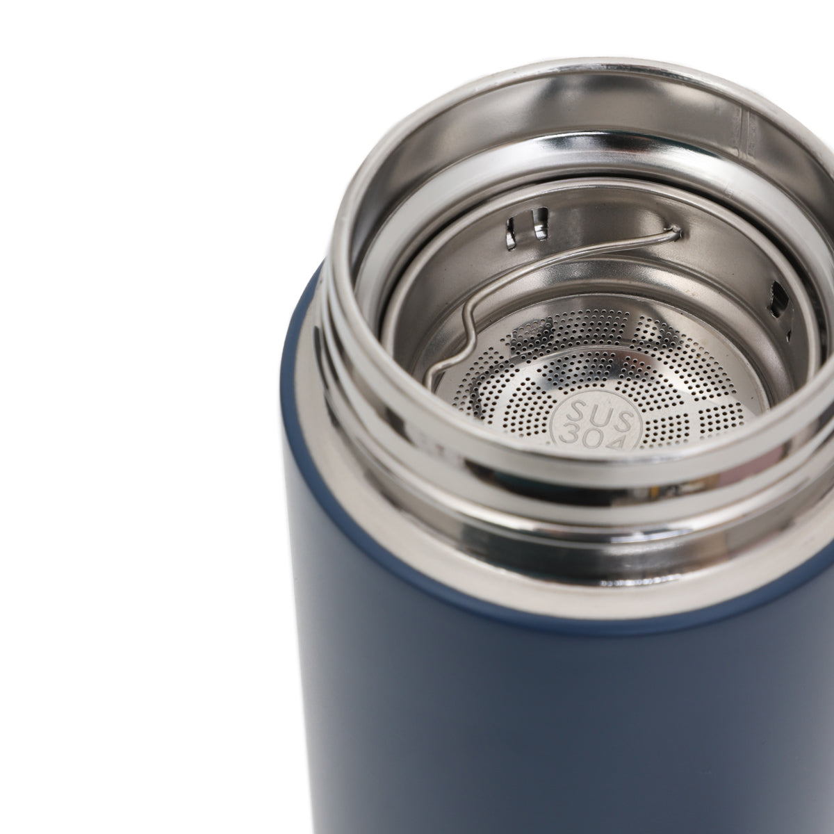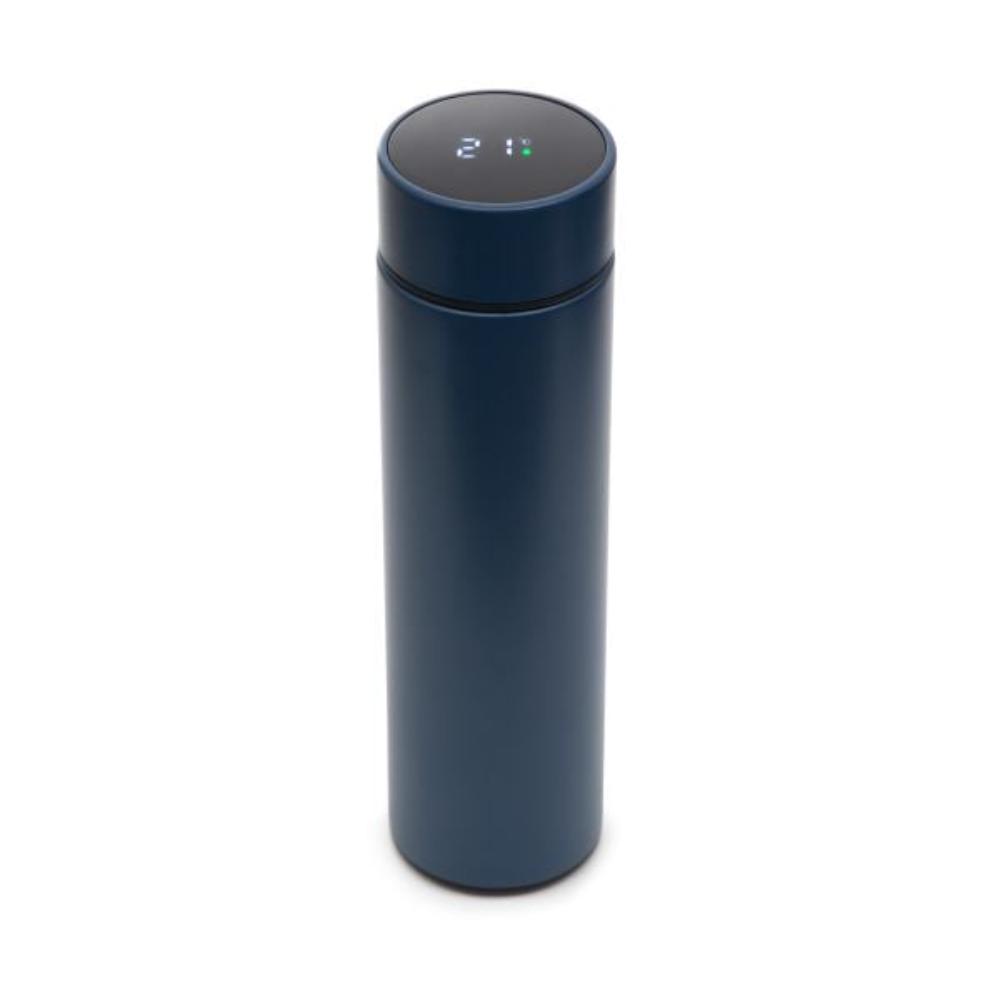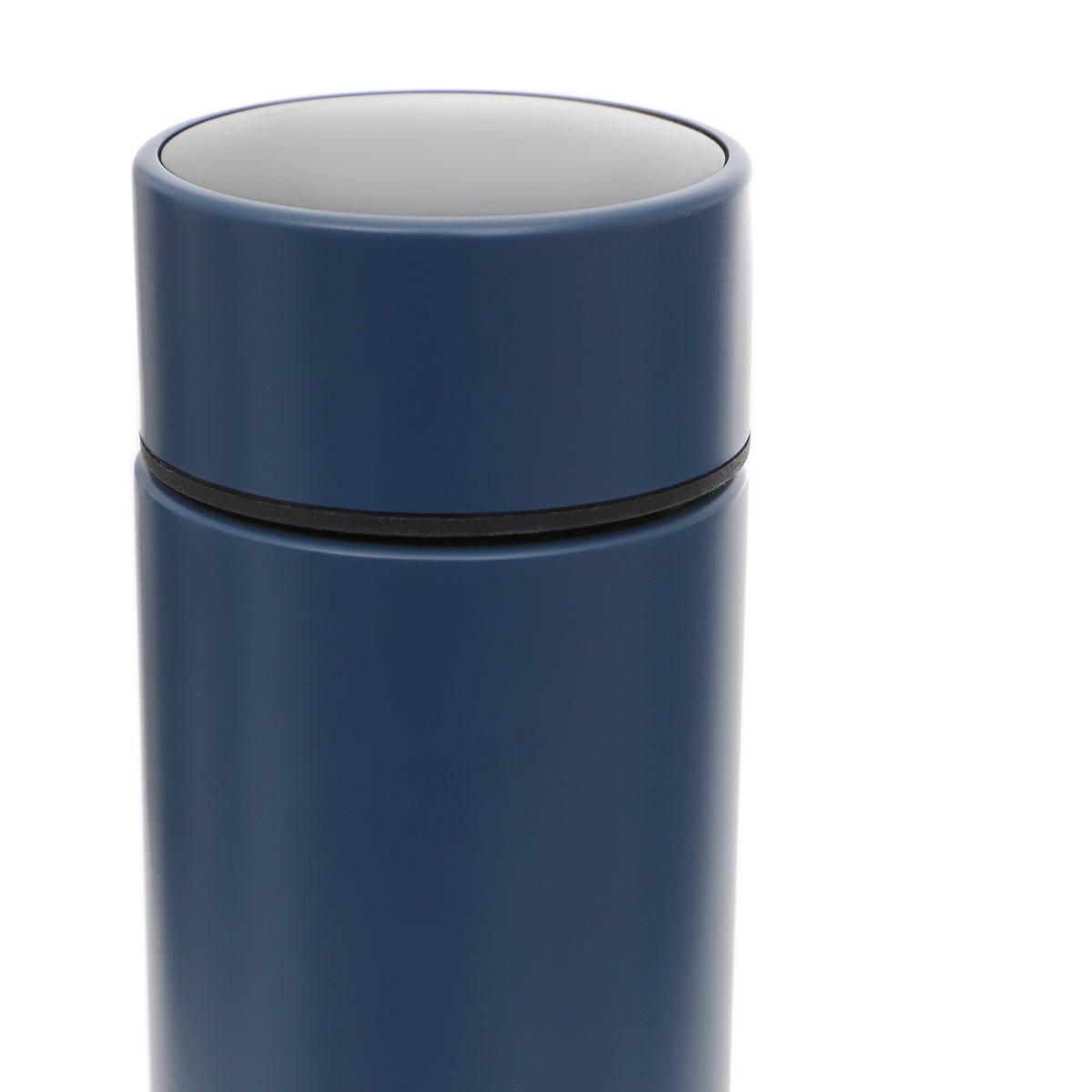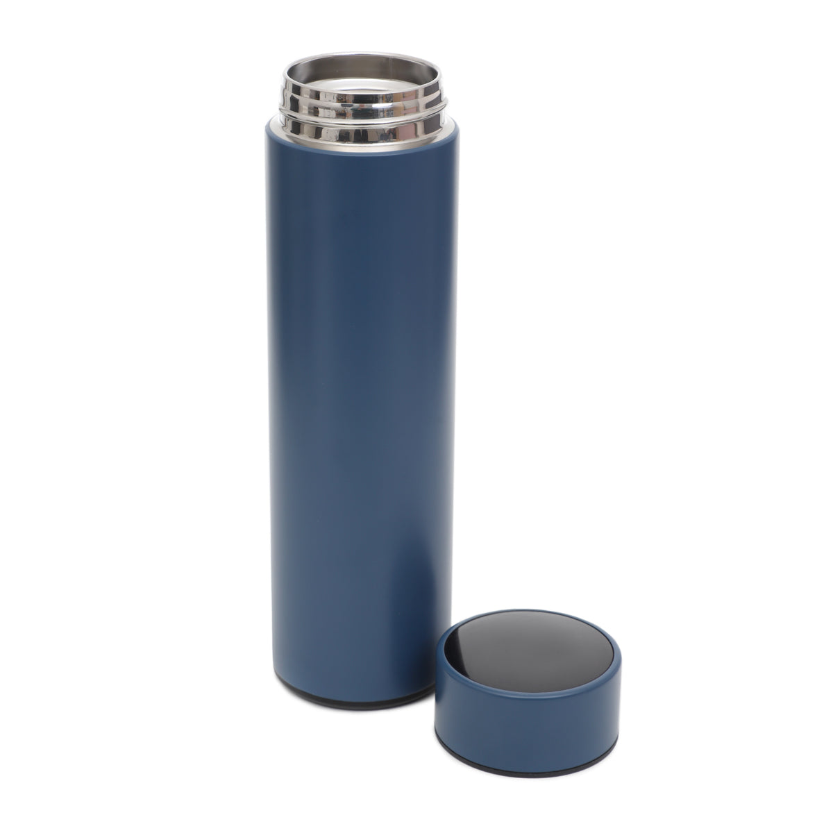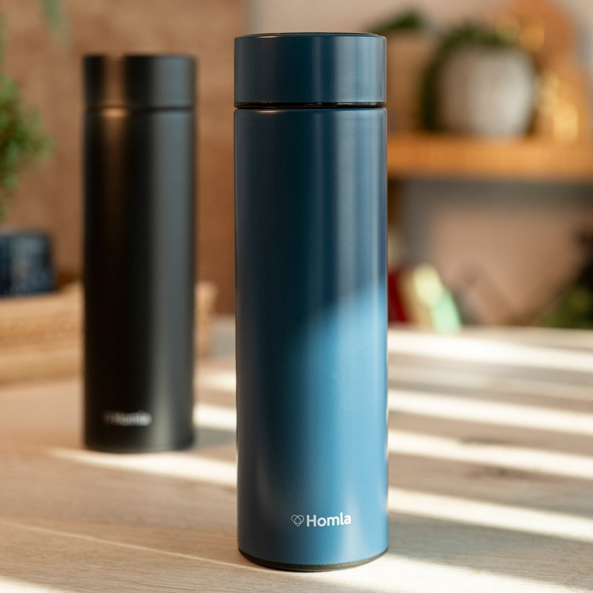 Capacity: 500 ml Cap with beverage temperature sensor and digital display Perfectly fitting steel brewer Vacuum insulation (double wall with vacuum inside) Thermos with temperature sensor 500 ml navy blue The HOMLA B2GANTE thermos is perfect as a beverage container for work, a trip or a winter walk. The double walls provide excellent insulation, so the thermos keeps you warm for up to 12 hours and cold for up to 24 hours. The thermos cap features an LCD display which, when touched with a square, displays the temperature of the drink. The thermos comes with a strainer which acts as a filter, preventing tea leaves or pieces of fruit from getting into the beverage being poured. Purpose The B2GANTE thermos is perfect for hot and cold drinks. You can use it on a daily basis, but also on trips, long car journeys and autumn trips to the forest. It is lightweight, handy and comfortable to use. Material The GANTE thermos is made of high-quality stainless steel and should be washed by hand.