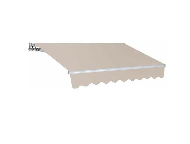 This type of awning is designed for easy installation and operation. The aluminium roller and front bar provide a sturdy frame for the fabric to hang from, while the steel support brackets ensure a secure mounting to a building or structure. The aluminium arms are adjustable to allow for different positions and angles of the awning for optimal shade coverage. The polyester fabric is durable and weather-resistant, with a PU coating to provide added protection against UV rays and moisture. The steel crank mechanism allows for easy opening and closing of the awning, making it simple to adjust depending on the weather or desired level of shade. Overall, this awning is a practical and stylish addition to any outdoor space, providing shade and protection from the elements while also enhancing the aesthetic appeal of a home or business. Awnings with arms and brackets for mounting Aluminium roller Ø 60 mm. - Aluminium front bar 45x25 mm. - Steel support brackets 35x35 mm., aluminum arms 47x28/37x20 mm. 280 gr/sqm polyester fabric with PU coated, steel crank.