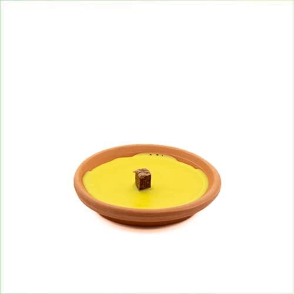 Made of terracotta earthenware with large stuppino. Diameter: 11 cm Terracotta jar.