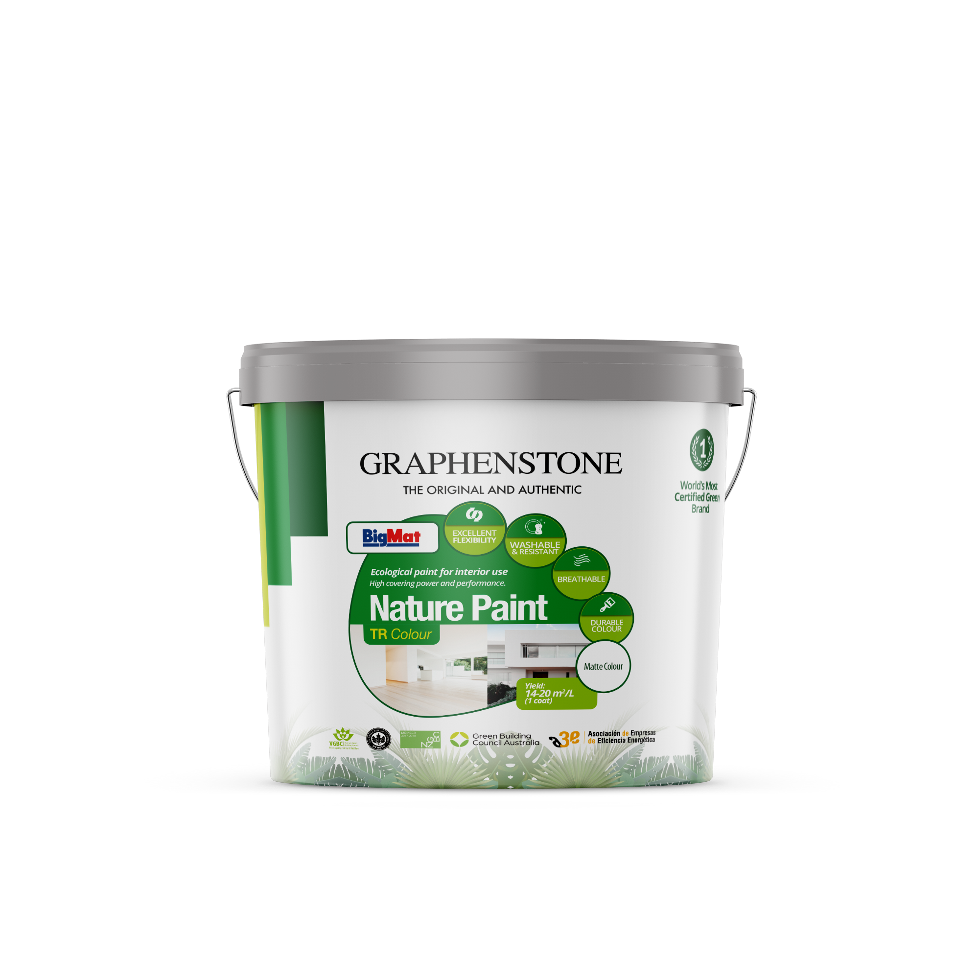 Zennature is a natural paint with graphene technology for interiors and with a nice silky matte appearance. It is washable, breathable and A+ Class in VOC emissions; It has good flexibility, resistance and adhesion. Ideal for construction and repainting.