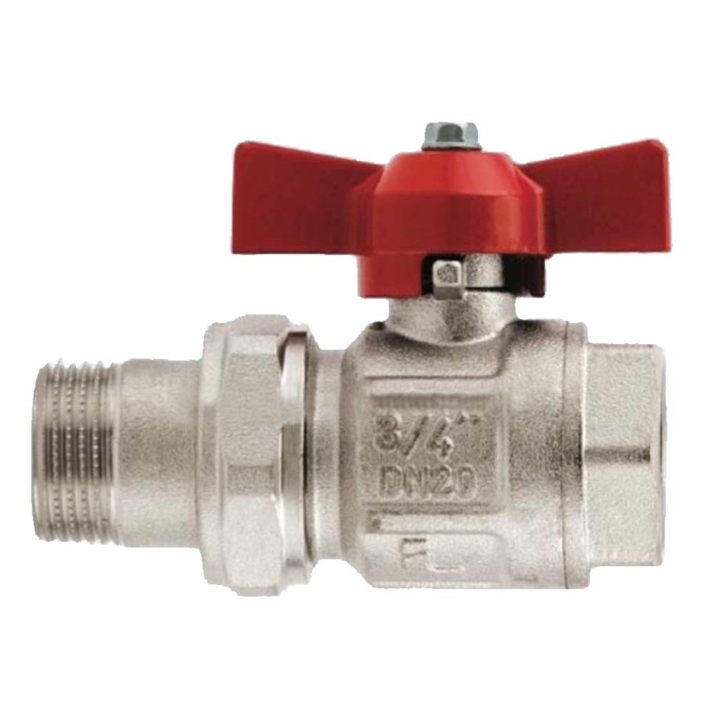 F connection with M manifold, full bore heavy type - valve body and ball in stamped brass, T-shaped aluminum handle, Teflon seals supplied with 1/2x1/2 - 3/4x3/4 - 1x1 fitting Size 1"