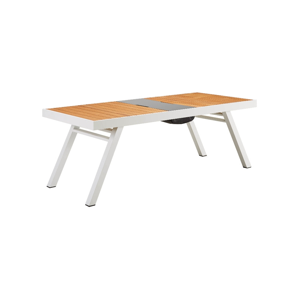 Using textilene, teak and white coating color to mix to make York very outstanding. The design is also very close to an indoor style.With a sharp color contrast in the sun, people can enjoy not only a beautiful sight but also a very warm feeling. Dimensions - Chairs: 60 x 62 x 85cm. Dining Table: 200 x 90 x 75cm.