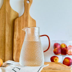 Add charm to everyday meals with the beautiful AMBER jug. Its hammered structure not only beautifully disperses the light, but also adds a unique character when serving your favorite drinks. The capacity of 1.5 liters is perfect for family dinners or meetings with friends. The stylish handle in a warm shade of copper gives the whole thing a unique, original character.