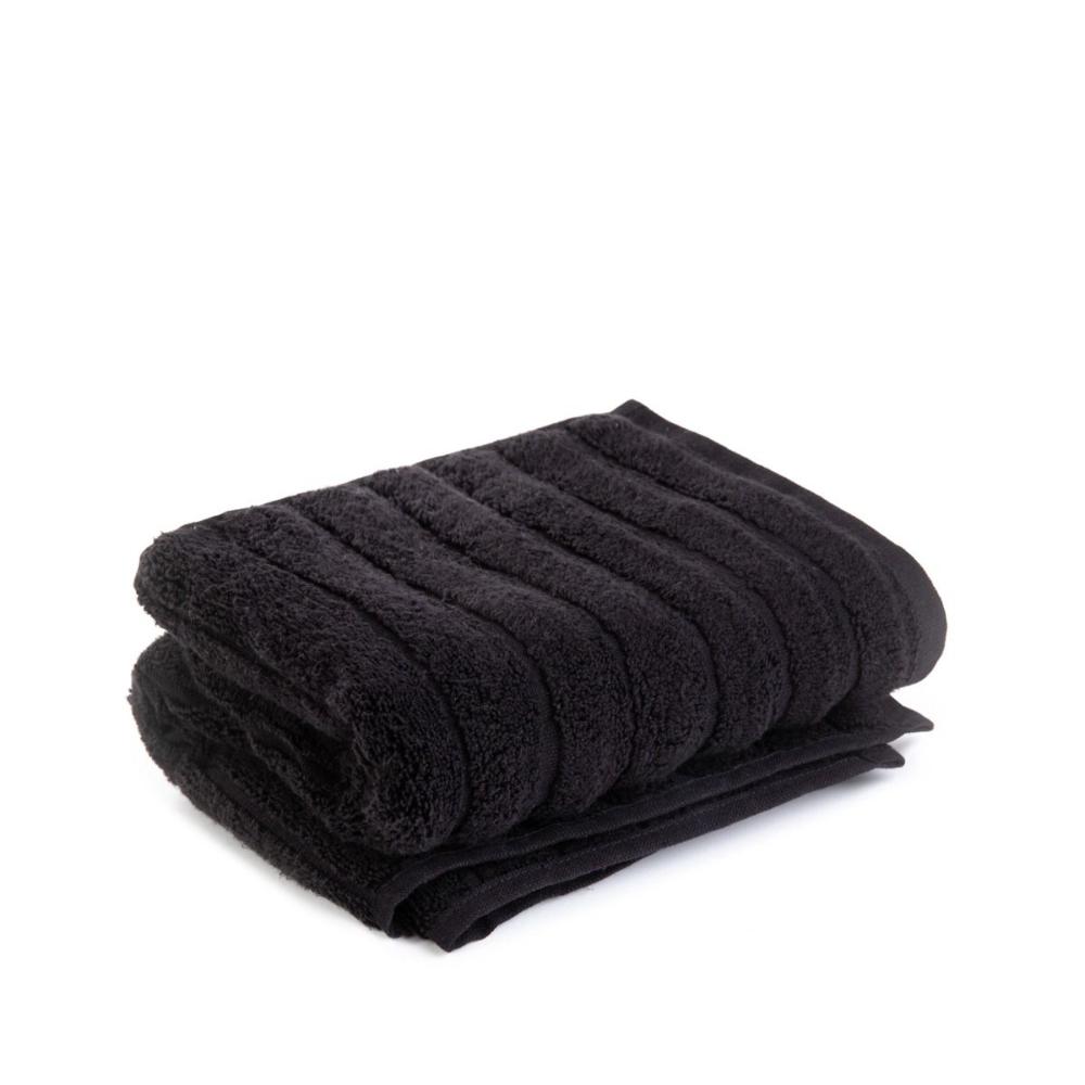 Dimensions: 50 x 90 cm Soft, skin-friendly cotton Excellent absorbency Elegant black colour Black cotton towel with embossed stripes 50x90 cm Towels are an essential piece of equipment in any bathroom. Hanging on a hanger, they are not only a practical accessory for drying the body, but also a stylish interior decoration. The HOMLA ASTRI towel impresses with its excellent absorbency and softness, making it perfect for everyday skin contact. Its surface is covered with minimalist embossing in the form of stripes, which adds to its unique style and elegance. Purpose The ASTRI cotton towel will help you dry your body efficiently after a bath. It will also work well as a towel to wipe your hair or a hand towel. The black colour makes it blend in perfectly with any arrangement, matching other towels and other bathroom accessories. Material The ASTRI towel is made from high-quality cotton with durable, abrasion-resistant fibres. The material used is characterised by excellent absorbency and is pleasant to the touch, so it does not irritate delicate skin.