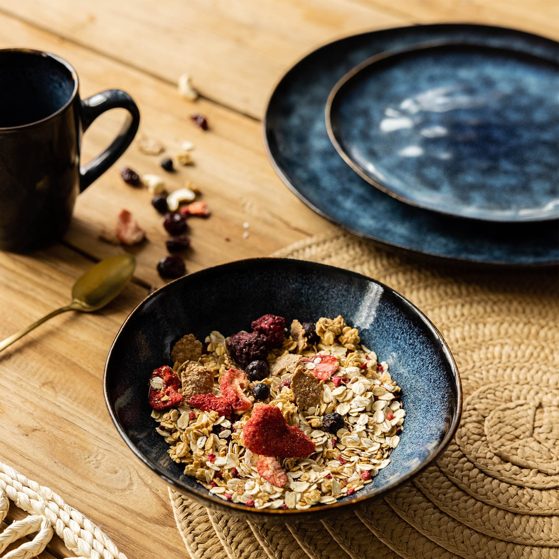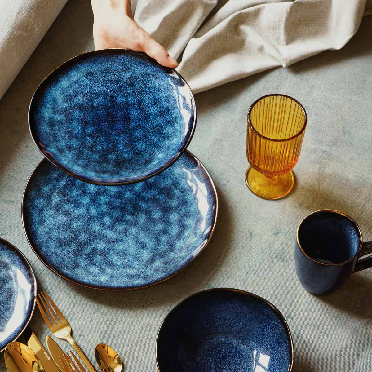 Materials made of the highest quality stoneware . It is a material which is distinguished by its high resistance and resistance to damage. In addition, stoneware is very easy to care for, so you do not have to worry about cleaning the article, as it is trivial - just put it in the dishwasher! Each product of the CASPER series is unique due to the colouring technology. The unique pattern is applied using the reactive glaze technique - which is why individual products may differ from each other.