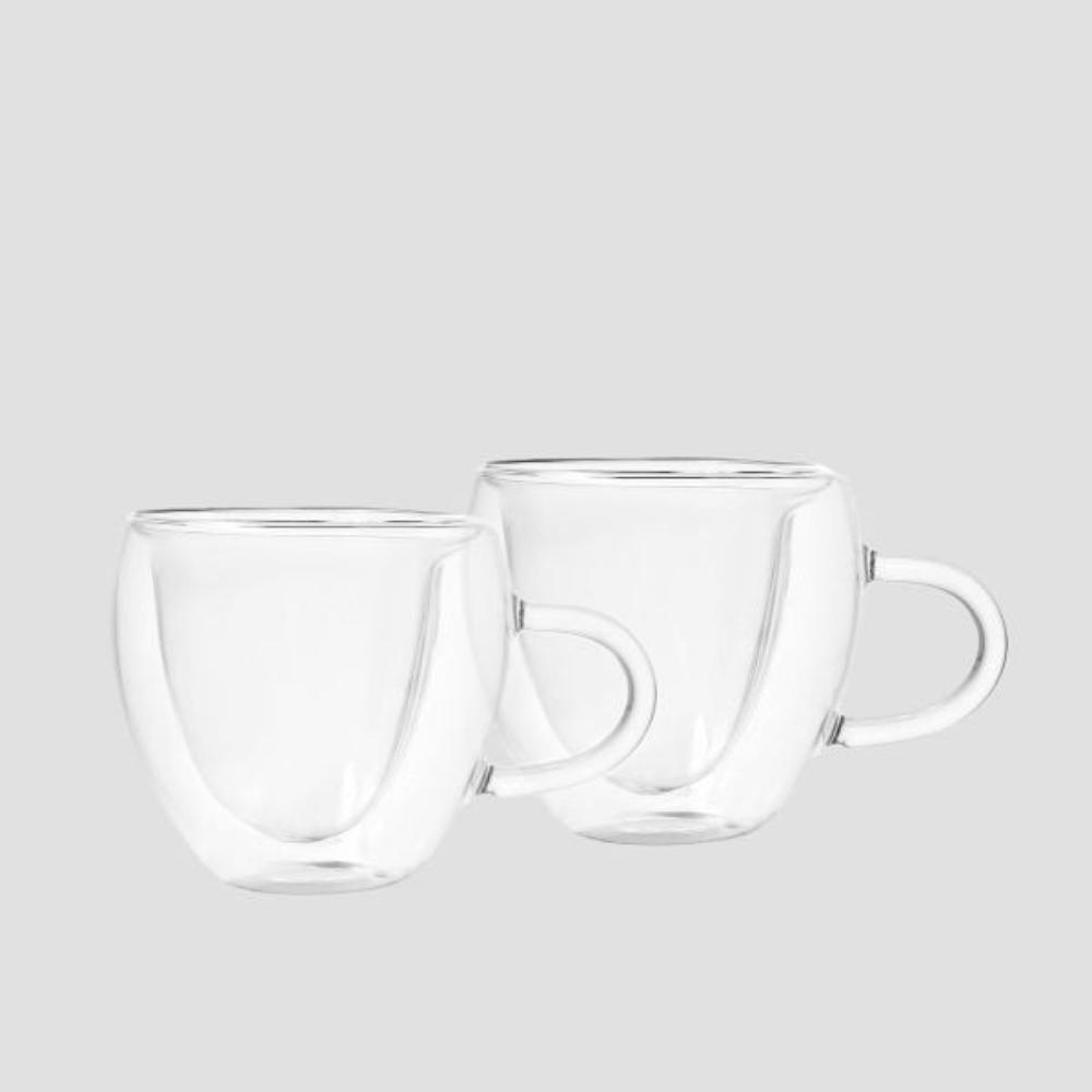 Purpose The double-walled HEARTS glass is an extremely unique way to serve a stimulating espresso. Drinking coffee from it in the company of a loved one will make not only the morning, but also the whole day more enjoyable. Characteristics What definitely sets the glass apart is its heart-shaped inner wall , which will add charm to your aromatic coffee. The comfort of use will be ensured by the handy handle, as well as the double walls that avoid burning your hands. The set includes 2 glasses with a capacity of 0.26 litres . Material The high-quality glass used in the production of the glasses makes them shatterproof and scratch-resistant. The product is dishwasher-safe and may not be used in the microwave.