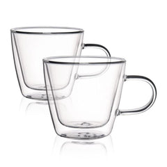 Equipping the kitchen with glasses is fundamental. However, the choice of double-walled glasses is definitely a unique and very modern solution, which not only pleases the eye, but also perfectly combines contemporary design with the functionality of the glassware. Thanks to its simple and universal form, the CEMBRA glass set will prove its worth in any kitchen. Purpose In the CEMBRA double-walled glasses you will serve cappuccino or americano in an original way, but also hot chocolate or your favourite tea. Features Thanks to the double wall , the glasses will be able to keep your drinks warm for a long time. In addition, the modern form ensures safety, as the outer wall of the glassware does not heat up, preventing burns to the hands. The transparent walls of the glass look extremely minimalistic, but this is exactly where the elegance and charm of this glassware lies. The set includes 2 glasses with a capacity of 0.26 litres . Material The glasses are made of heat-resistant and scratch-resistant glass . The material is smooth, perfectly transparent and lighter than classic glass. The product is dishwasher-safe and cannot be used in the microwave.