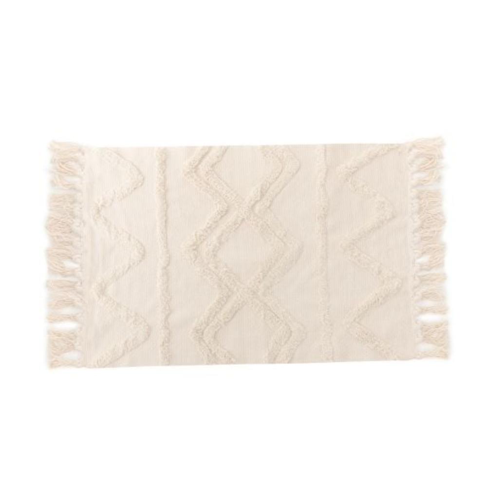 Soft and lightweight Shorter sides finished with tassels Durable fabric Dimensions: 60 x 90 cm Cream-coloured rugs with tassels 60 x 90 cm The HOMLA ESTO rug is a stylish accessory that will enrich an arrangement and also add a cosy touch. All year round it will be a great complement to your décor, and in winter it will additionally keep your feet warm. Made from high quality materials, it is resistant to everyday wear and tear, yet pleasant to the touch. Purpose The ESTO rug is perfect as an addition to the living room, bedroom, hallway or dressing room. You can spread it near the bed, sofa, armchair or on the passage to the room. Made in a cream colour and finished with tassels, it will fit perfectly into boho, hygge, japanese and eclectic spaces. Material The rug is made of cotton and polyester. The material is pleasant to the touch, holds its colour permanently and does not fray.