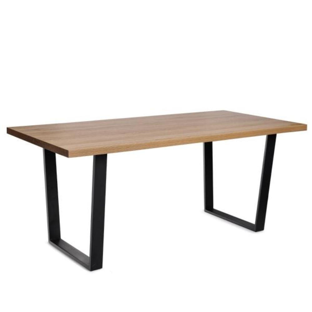 Purpose The FANE table from the BASIC line is sure to find its place in your home thanks to its stylish, casual design. It will perfectly blend in with austere, dark interiors, as well as bright rooms where it will contrast its décor. The product is suitable for the home living room or an elegant office. FANE is a proposal maintained in loft, industrial or eclectic style. Features Thelarge rectangular top of FANE is definitely the defining element of the product. Stability is ensured by four metal legs, which are additionally connected to each other. The mixture of black and light wood looks beautiful and will give your interior a unique chic look. Place your favourite plant or other dream decorations on it and you will certainly create something unique. The table measures 18 cm x 85 cm x 76 cm. Material The combination of fibreboard and metal is a long-lasting solution. The materials are resistant to temperature and chemical agents. They do not react to moisture, and the simplicity of maintenance of the table are considerable advantages that will make your use of this article pleasant.