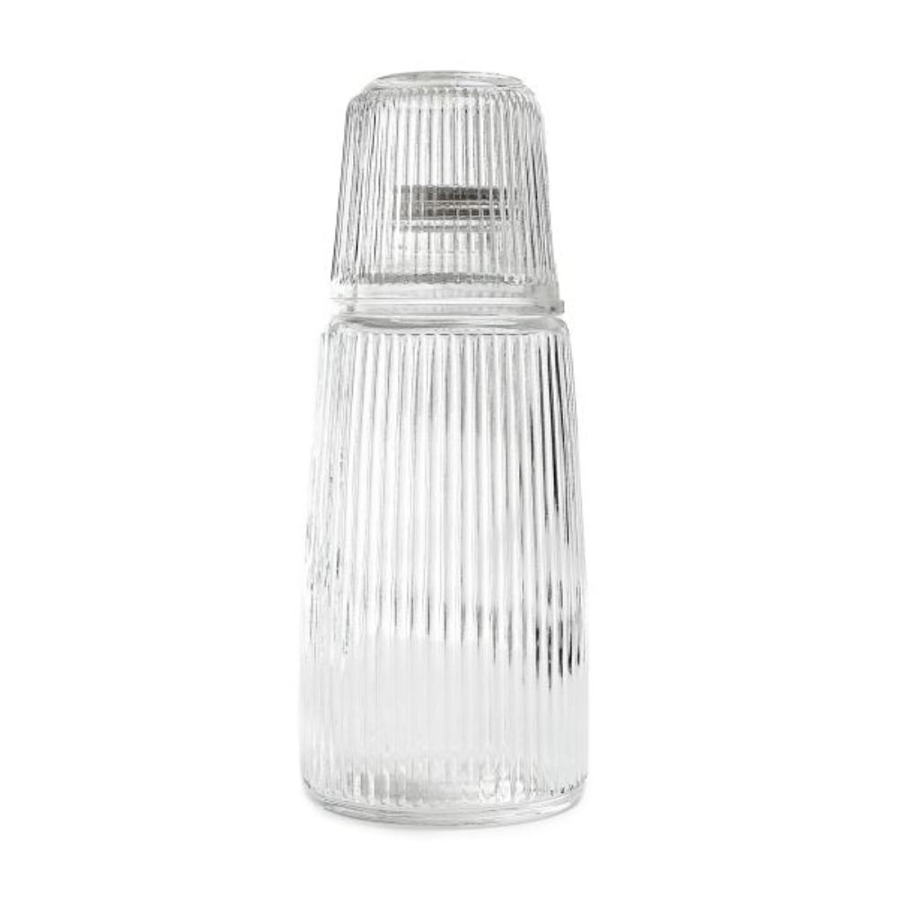 Grooved water carafe with glass Made of high-quality, durable glass Sleek, minimalist design With practical nut Grooved water carafe with glass Do you want your kitchen to be not only practical, but also beautiful? Stylish kitchen accessories can help with this. An elegant fluted water carafe with a practical glass will make your dining table look even more impressive. Destiny You can use the fluted carafe with a glass to store various types of drinks such as water, lemonade, cocktails and others. This is a perfect solution especially for people who want to serve drinks in a nice setting. Material The HALLIE water carafe is made of durable glass that is resistant to mechanical damage. It is an extremely durable and at the same time very decorative product, equipped with a practical, chrome-plated cap.