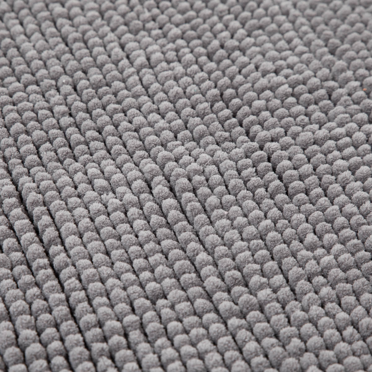 Soft, tactile material Protects the floor from splashing Carefully hemmed edges Dimensions: 50 x 70 cm Grey bathroom rug 50 x 70 cm Soft and warm, the JON rug is an excellent accessory for any bathroom. The rug is characterised by its rectangular shape and its entire surface is kept in grey, so it will easily fit into most arrangements. Placed near the bath or shower, it will provide comfort as soon as you get out of the bath. Purpose The HOMLA JON bathroom rug will provide a pleasant surface when you get out of the bath. You will enjoy standing on it, thus avoiding contact with cold and slippery tiles. Stylish and practical, it will not only be a sensational design addition, but will also help you avoid splashing on the floor. Material The rug has been made from a durable material, which ensures its durability and softness. Resistant to stretching and colour loss, it will maintain its original appearance for a long time. An anti-slip mat has been placed on the underside of the rug to prevent it from slipping on the tiles.
