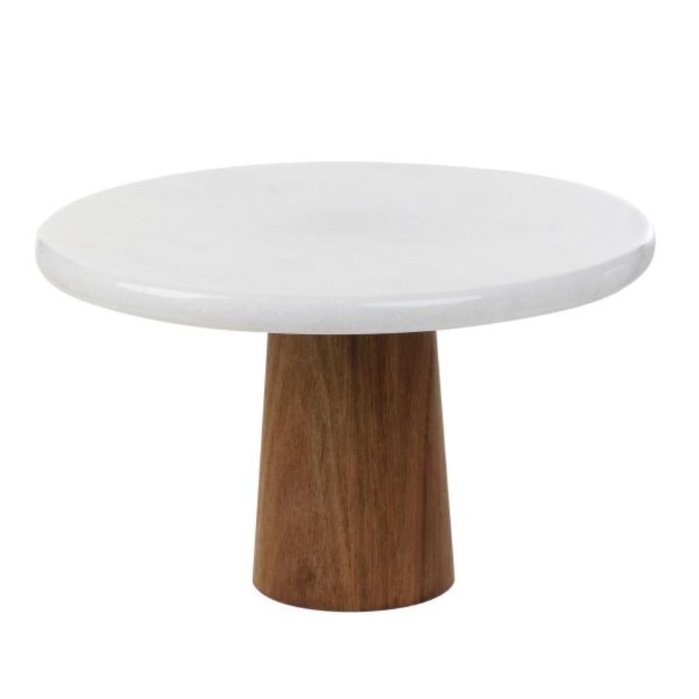 Surprise your guests with a stylish and modern table setting by serving snacks on a HOMLA MARBLE plate. We combined elegant white marble with acacia wood, which brings a breath of nature to the table and adds warmth to the composition. The plate is placed on a leg, thanks to which you will save some space on the countertop and make the arrangement more dynamic. The delicacies served there will certainly be the first to catch your eye and will quickly disappear from the table.