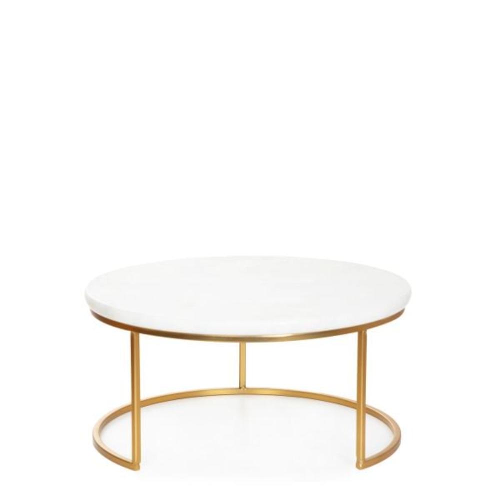 Beautiful combination of white marble and gold Original form Diameter: 27 cm Height: 13.5 cm White marble platter The MARBLE platter is the perfect serving dish for those who attach importance not only to the taste of their snacks, but also to the beautiful way in which they are served. The white marble top is set on a gold frame, which together creates an extremely stylish composition. Set on a table, it will add elegance to the entire arrangement and allow the prepared delicacies to be displayed in a beautiful way. Purpose The MARBLE platter is perfect for serving both sweet and savoury snacks. You can place cupcakes, pieces of cake, small sandwiches or bread on it. It will certainly come in handy at parties, festive gatherings and family celebrations. It will fit perfectly into compositions inspired by glamour, traditional and modern styles. Material The frame of the MARBLE platter is made of high-quality metal, and the top is made of marble. The materials used are durable and resistant to damage. The product should be washed by hand.