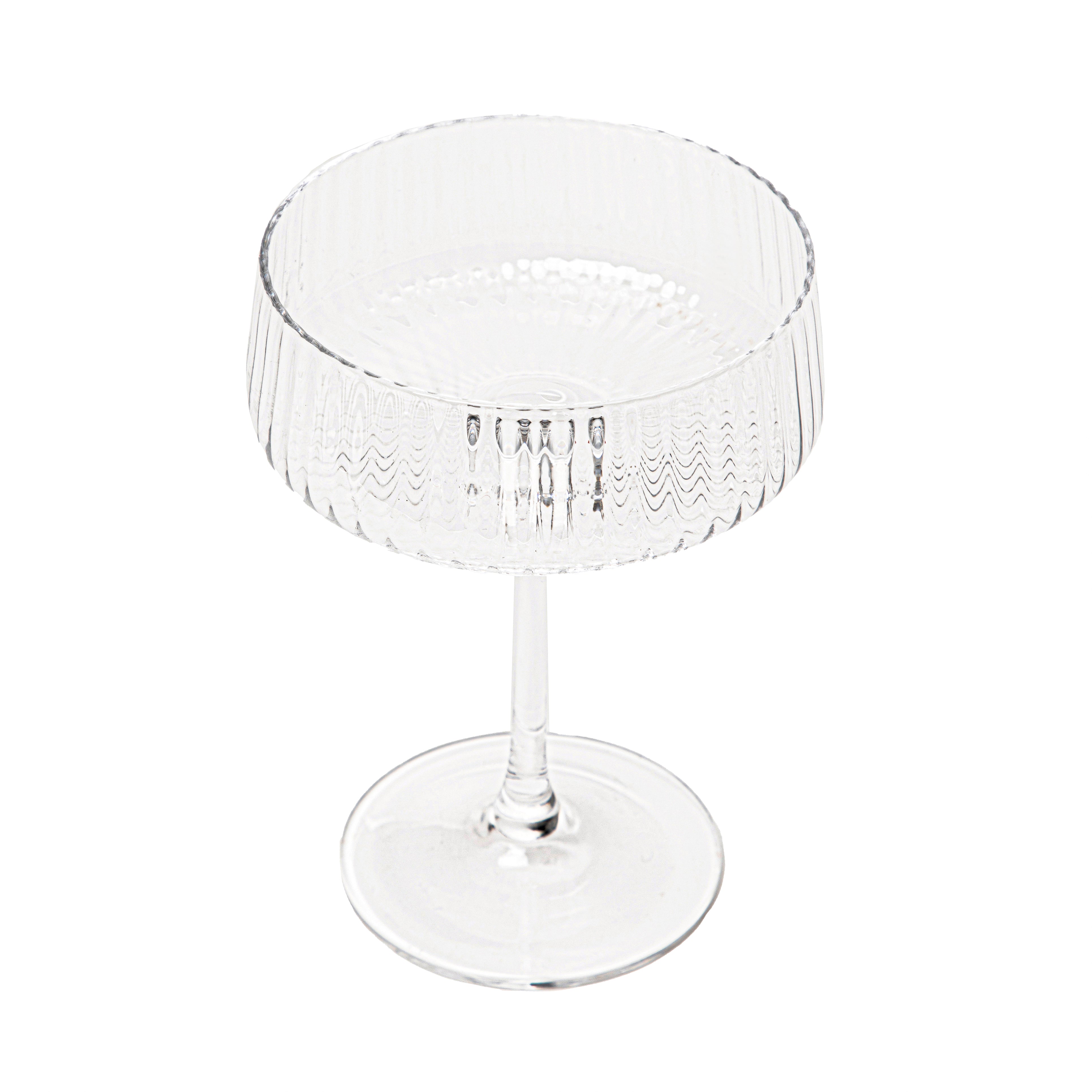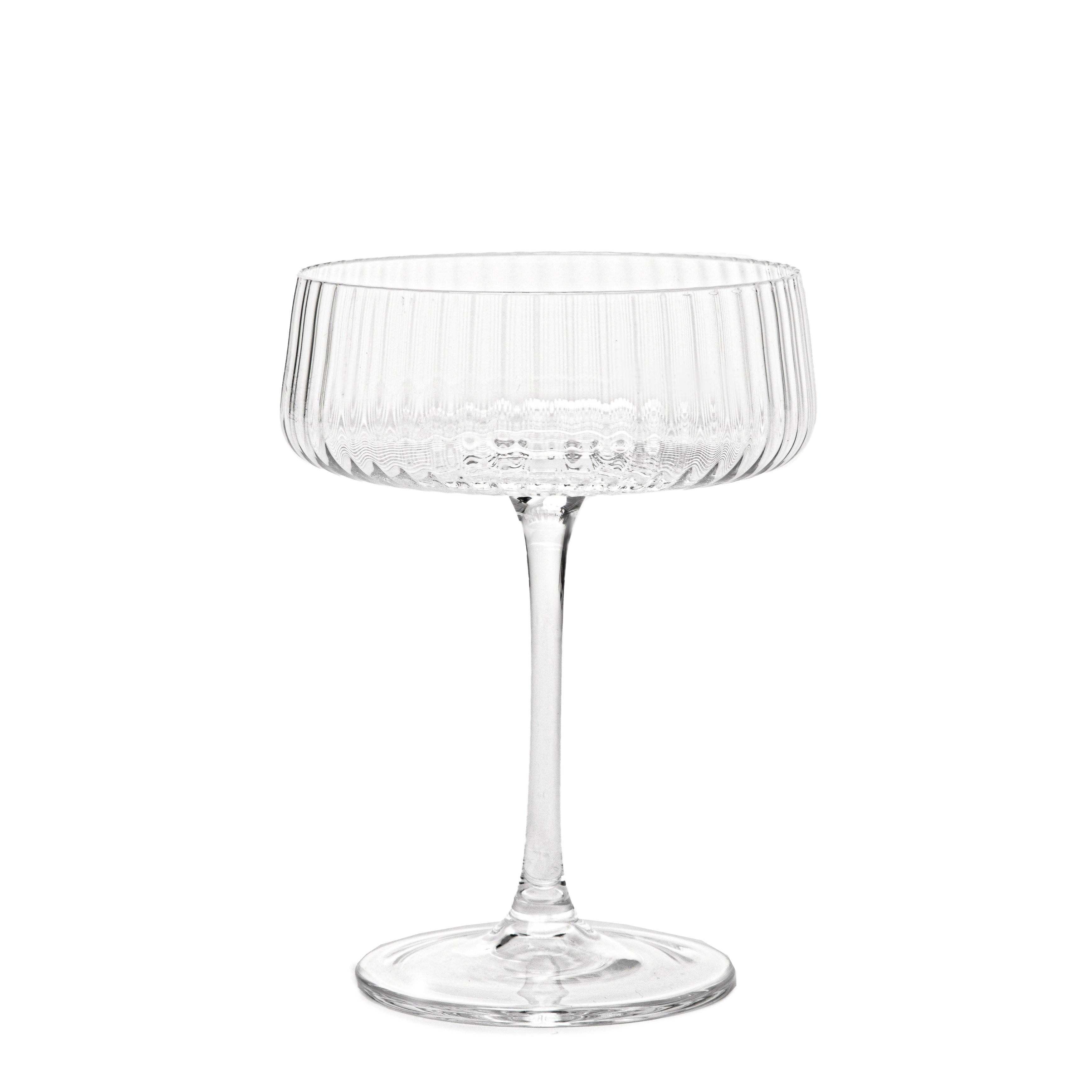 Purpose The MEGALO cocktail glass is perfect for evening gatherings with friends, family parties or dinners for two. A drink served in it will surely impress your guests! MEGALO is designed for straight-up drinks - best mixed in a shaker and then served without ice cubes. Characteristics The MEGALO glass is designed for cocktails. It is made of clear glass with a fluted bowl. The slim and high leg protects the drink from the heat of your hand. The glass has a capacity of 200 ml. Material MEGALO is made of high-quality glass. The material used is characterised by resistance to damage and a smooth surface that is easy to clean. The glass should be washed by hand.