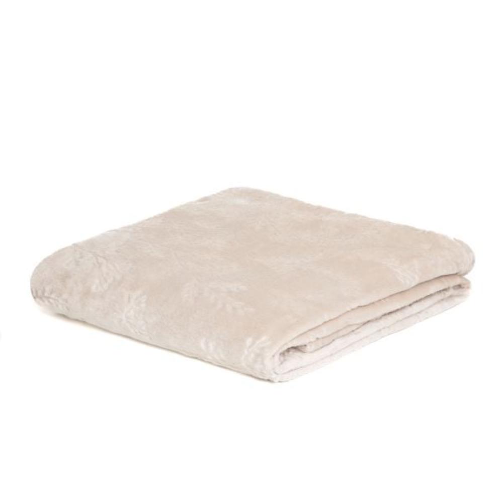 Soft, warm material Universal colour Dimensions: 150 x 200 cm Carefully hemmed edges Beautiful MIRIMO blanket 150 x 200 cm Immerse yourself in blissful comfort and cosiness with the MIRIMO blanket! Its delicate pattern and high-quality material will not only keep you warm, but also provide you with exceptional relaxation and indulgence. Whether you want to warm up during a chilly night or simply relax after a hard day, this blanket will be your perfect companion. Purpose The MIRIMO blanket is distinguished by its delicate pattern of embossed branches, which give it subtlety and a unique charm. A universal beige colour, it blends in perfectly with a variety of arrangements, adding cosiness and harmony. Perfect for relaxing on the sofa, reading a book in an armchair or wrapping up on the terrace during chilly evenings. Material The blanket is made of high-quality polyester material, which is soft, lightweight and easy to care for. This ensures comfortable use.