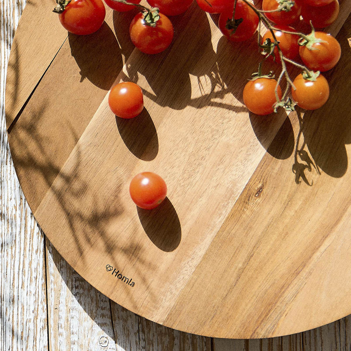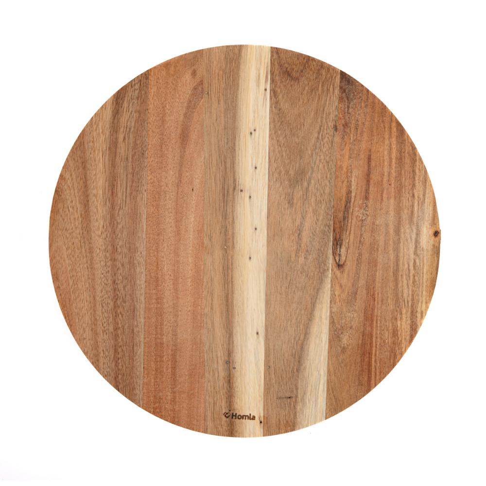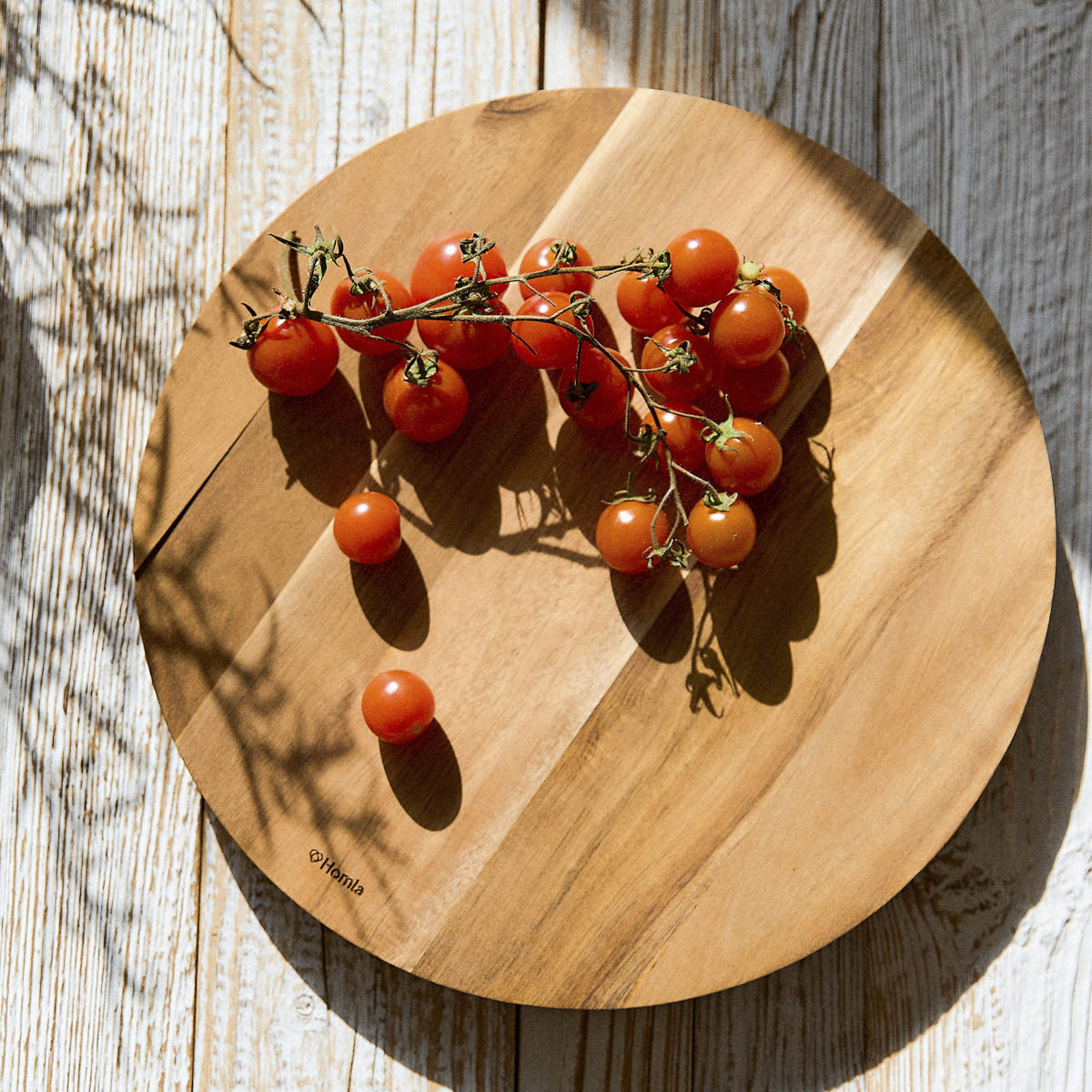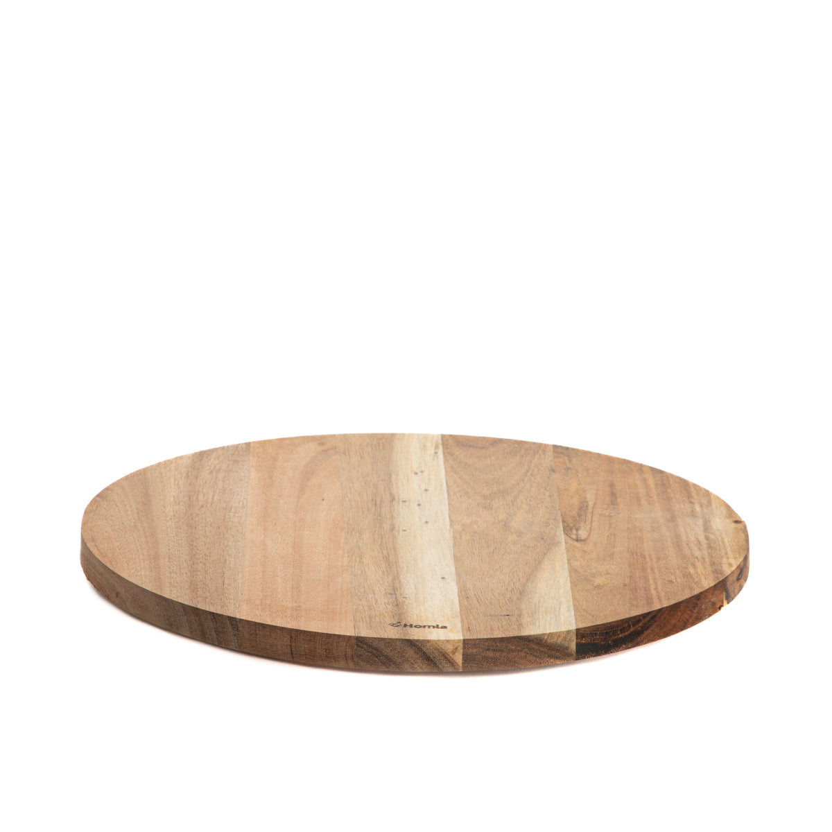 Beautiful natural discolouration that makes each piece unique Enables you to present savoury snacks in an impressive way Round serving board 33 cm Cheese board, meat board, fruit board ... serving on wooden trays has become a real hit at parties. No wonder - natural wood wonderfully warms up the table setting and is a beautiful backdrop for all kinds of delicacies. The MOOKA serving board impresses with its grain marks and unique discolourations, which make each piece completely unique. It will look great on your table and will be an indispensable part of the tableware during festive gatherings and a spontaneous visit from friends. Purpose The MOOKA board is perfect as the centrepiece of the table at parties. You can use it to create an appetising composition of different types of snacks - cheese, cold cuts, small tomatoes, nuts, fruit pieces and eggs. You can fill it to the brim or arrange the treats artistically so that they don't cover all the wood. With a diameter of 33 cm, it is ideal for serving larger portions, encouraging shared meals. Material The ACACIA tray is made from acacia wood, which is characterised by its durability, is resistant to damage and becomes more noble over the years. The product should be washed by hand.
