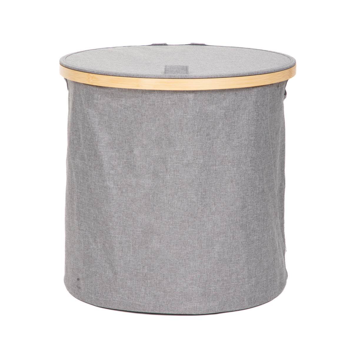 Lightweight lid with discreet handle Handles for convenient carrying Modern design Ideal for the bathroom or bedroom Grey fabric laundry basket 38x37 cm Make even the most ordinary objects a part of your décor and perfectly accentuate the design of your home. The NELLIE laundry basket impresses with its modern design, making it a great addition to your bathroom or bedroom. Practical and stylish, it will keep things tidy and at the same time blend in perfectly with the décor of the room. Purpose The NELLIE hamper is perfect for storing linen, towels or clothes for washing. You can place in it, for example, only delicate fabrics that should be washed separately in a special programme. The cut-out handles allow you to move it easily from the bathroom or bedroom to the washing machine area. Material The hamper has a sturdy frame that is filled with durable fabric. It is lightweight and easy to carry.