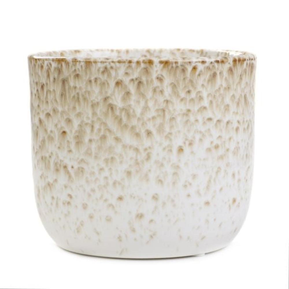 Beautiful and durable ceramics Decorative design Glossy, smooth surface Protects against water leakage Flower pot cover with beige design The HOMLA OASIS ceramic flowerpot cover will make your flowers look even better than before. It is decorated with a stylish pattern that becomes increasingly dense at the top edge. The subtle colouring in a palette of warm beige wonderfully emphasises the green of the leaves and enhances the beauty of the plant. Purpose The OASIS flowerpot casing is perfect for green leafy plants, ferns or cacti. By placing a flowerpot in it, you will protect a piece of furniture or a windowsill from water stains, which often leak out after watering. The casing fits perfectly into any interior - minimalist, rustic or modern. Material The casing is made of ceramic. The smooth surface makes it easy to keep clean.
